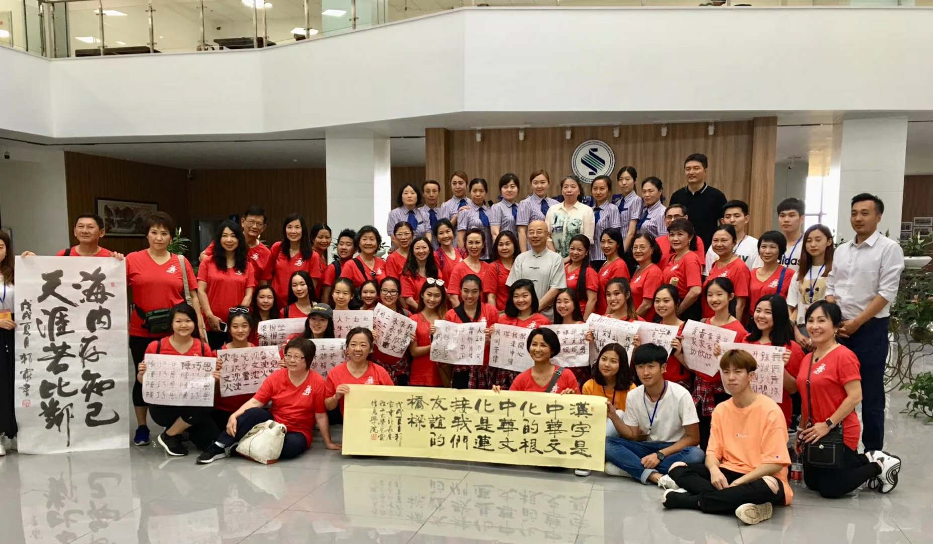 下午在“邦家書藝苑”,學(xué)院客座教授徐邦家先生為舞蹈團(tuán)成員做了《中華傳統(tǒng)文化》交流講座,徐邦家先生親筆題詞:“海內(nèi)存知已,天涯若比鄰”、“漢字是中華文化的根,中華文化是連接我們友誼的橋梁”。舞蹈團(tuán)成員贊嘆徐邦家先生的書法藝術(shù),紛紛與徐邦家先生合影留念。
