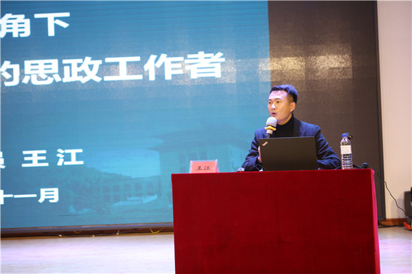 本次活動邀請了曾兩次獲得吉林省輔導(dǎo)員職業(yè)能力大賽一等獎、全國復(fù)賽一等獎、全國輔導(dǎo)員技術(shù)大賽三等獎、連續(xù)三年被評為吉林農(nóng)業(yè)大學(xué)“優(yōu)秀輔導(dǎo)員”的獲得者王江老師。他做的主題報告是《如何做一名合格的思政工作者》。