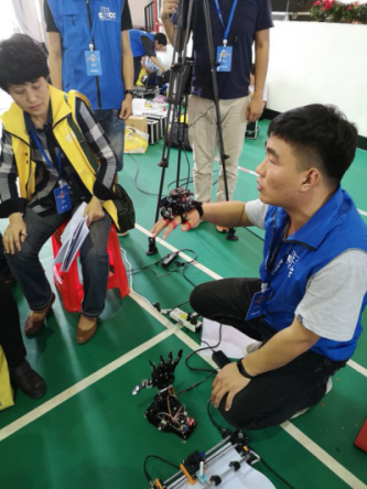 機(jī)電工程分院鄭璽、夏梓銘等同學(xué)的體感機(jī)械手和仿生搜救機(jī)器人在“教育機(jī)器人創(chuàng)意設(shè)計和制作”賽項中力搏群雄,克服種種困難,最后取得了2個國家級一等獎的好成績。劉曉津、劉曉龍、張學(xué)禹、馬純金、李季炎等同學(xué)獲得國家二等獎。