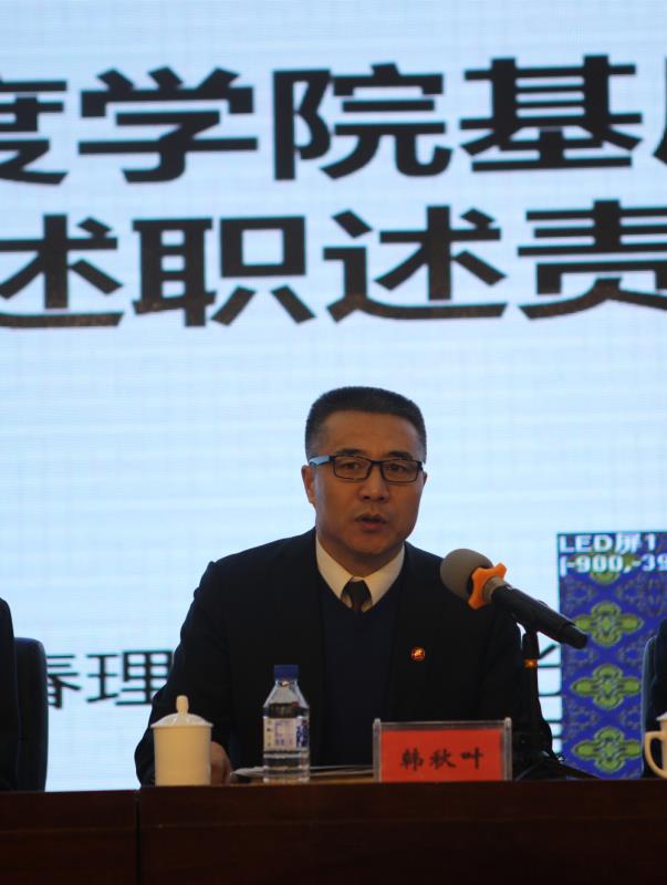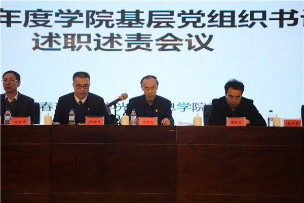 按照省委教育工委統(tǒng)一部署要求,1月10日9時(shí),學(xué)院黨委在圖書館報(bào)告廳召開了“2018年度基層黨組織書記述職述責(zé)會(huì)議”。省委教育工委組織部調(diào)研員王宏閣參加會(huì)議并指導(dǎo)工作。學(xué)院黨委班子成員、基層黨組織書記、副書記、學(xué)院副科級(jí)以上干部、黨務(wù)工作部等同志以及14個(gè)黨總支、直屬黨支部教師代表參加了此次會(huì)議。會(huì)議由學(xué)院黨委書記、督導(dǎo)專員韓秋葉主持。