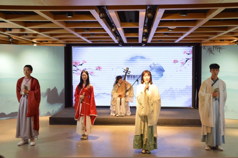學院社團聯(lián)合會秉文國學社演奏了《琵琶行》、學院團委大學生藝術團朗誦了原創(chuàng)詩歌《青春綻放新時代》。