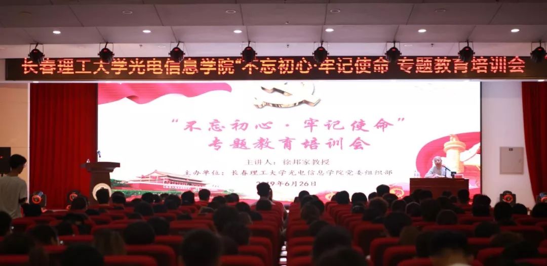 6月26日下午13:30分,學(xué)院黨委在圖書館報(bào)告廳隆重舉行“不忘初心·牢記使命”專題教育培訓(xùn)會(huì)。黨委書記韓秋葉出席并主持會(huì)議,各基層黨組織書記、副書記、教師黨支部書記、學(xué)生黨支部書記、學(xué)生黨員、入黨積極分子共395人參加了專題培訓(xùn)會(huì)。