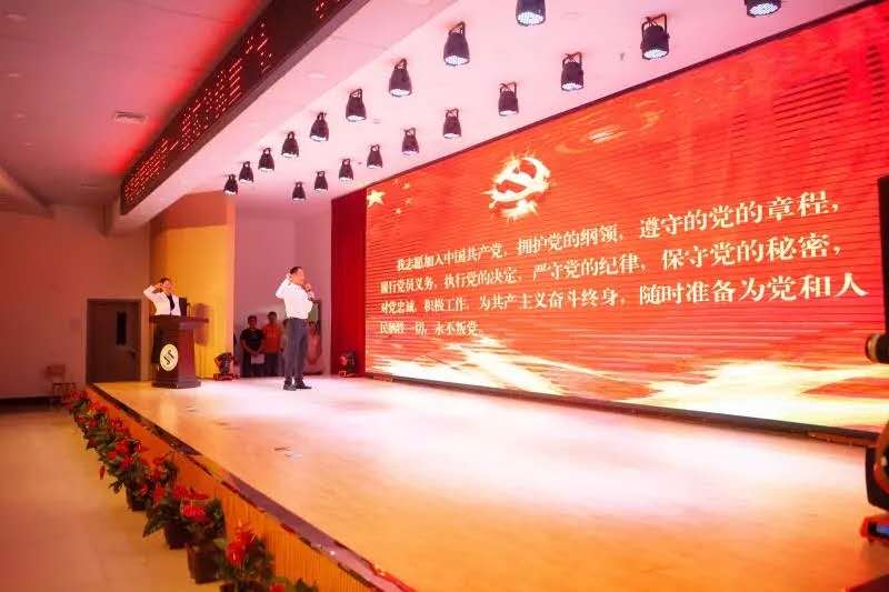 “我志愿加入中國共產(chǎn)黨,擁護黨的綱領(lǐng),遵守黨的章程……”新老黨員一起緊握右拳,莊嚴宣誓,誓詞鏗鏘有力,黨員們目光堅毅,鄭重許下對黨的承諾,表達著為共產(chǎn)主義事業(yè)奮斗終身的決心。