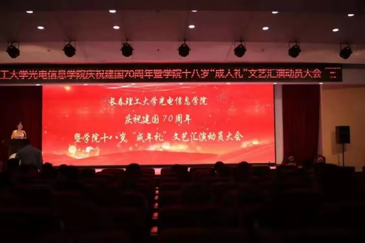 2019年8月28日下午,長春理工大學(xué)光電信息學(xué)院在圖書館報告廳召開了慶祝建國70周年暨建校18周年成人禮活動動員大會,黨委書記韓秋葉做了動員講話,大會由院辦主任徐紅芳主持。