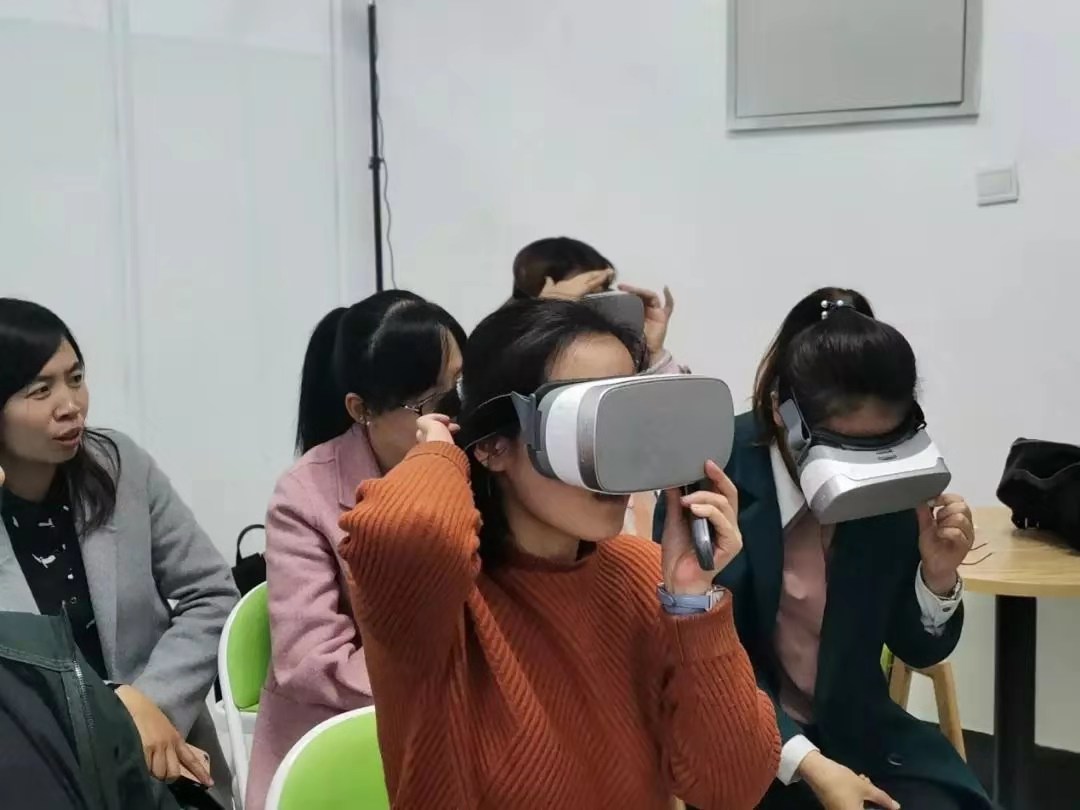 我校教師在培訓(xùn)后紛紛拿起VR眼鏡進(jìn)行實操練習(xí)。本次北京領(lǐng)途教育的交流培訓(xùn)深化了校企合作,增進(jìn)了我校創(chuàng)新項目的先進(jìn)性和科學(xué)性。