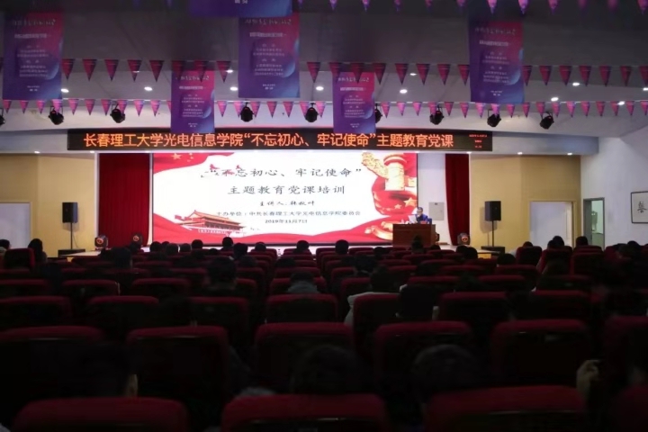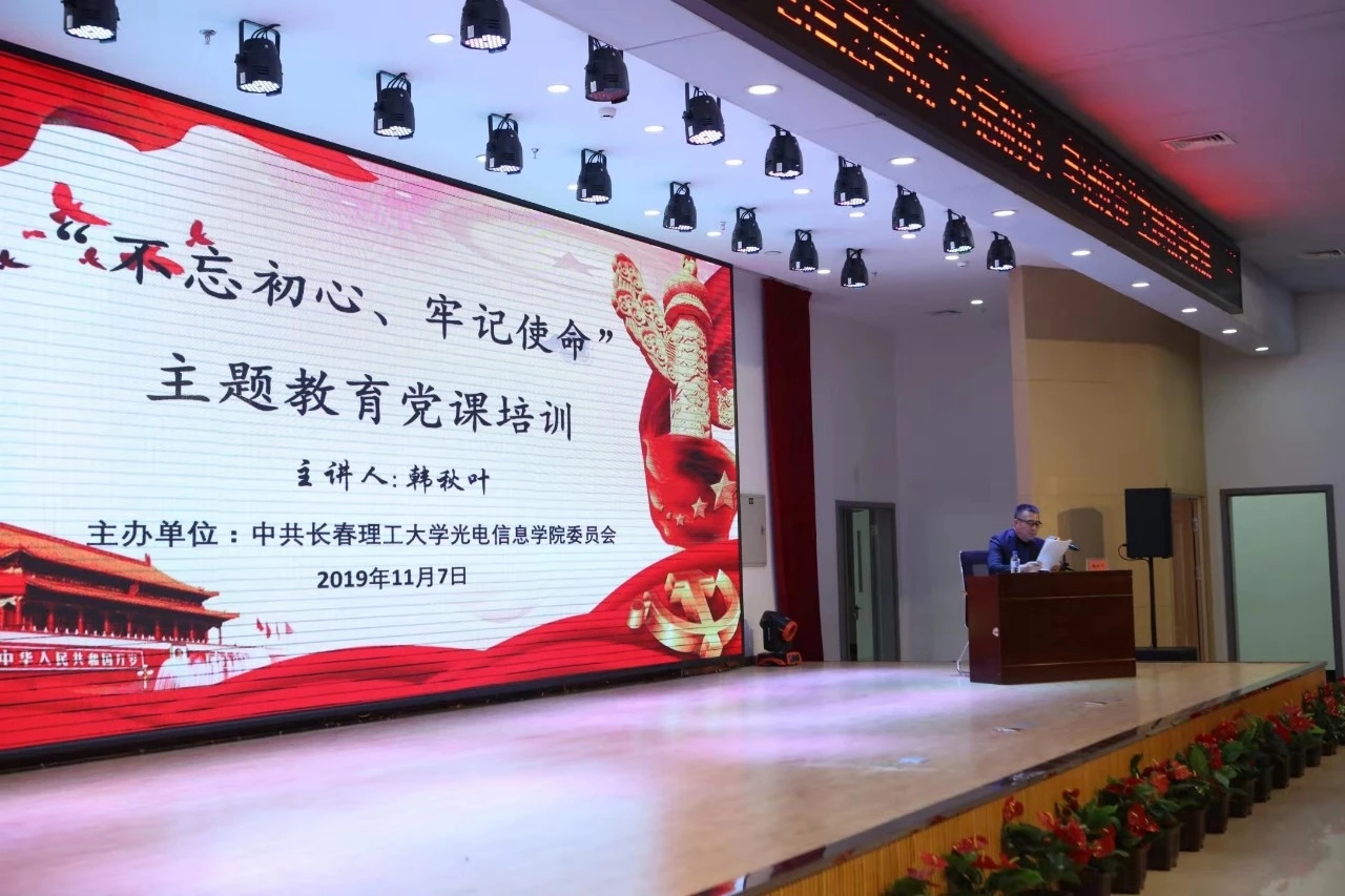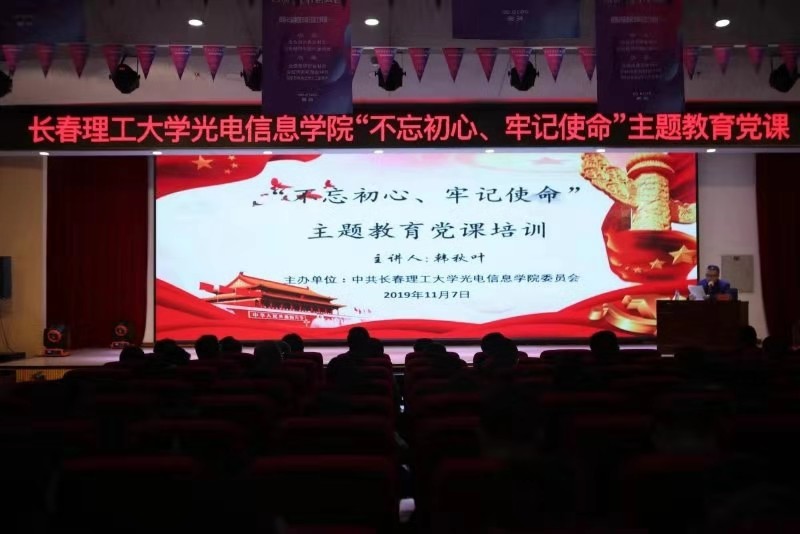 2019 年 11 月 7 日下午,按照中央、省委、省委教育工委“不忘初心、牢記使命”主題教育工作部署,《長(zhǎng)春理工大學(xué)光電信息學(xué)院“不忘初心、牢記使命”主題教育實(shí)施方案》具體要求,學(xué)院黨委書記韓秋葉為全校師生黨員、部分入黨積極分子講黨課。省委教育工委第四巡回指導(dǎo)組成員王宏閣、光電信息學(xué)院全體教師黨員、學(xué)生黨員、部分入黨積極分子參加了本次黨課培訓(xùn),會(huì)議由組織部副部長(zhǎng)范爽主持。