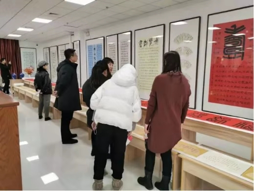 各位教師都很珍惜這次學習的機會,紛紛來邦家書藝苑參觀學習。其中包括董事長辦公室,人事處和黨務(wù)工作部人員,參與這次活動的人認真參觀了每一幅書法,學習交流并一起談?wù)撝鴷ㄋ囆g(shù)的文化與內(nèi)涵。