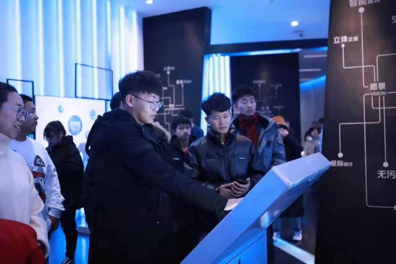 在三樓未來展廳,同學們體驗生態(tài)文明統(tǒng)領(lǐng)下的未來城市交通、生態(tài)發(fā)展、智慧城市建設(shè),提前感受2080年的未來美好長春。