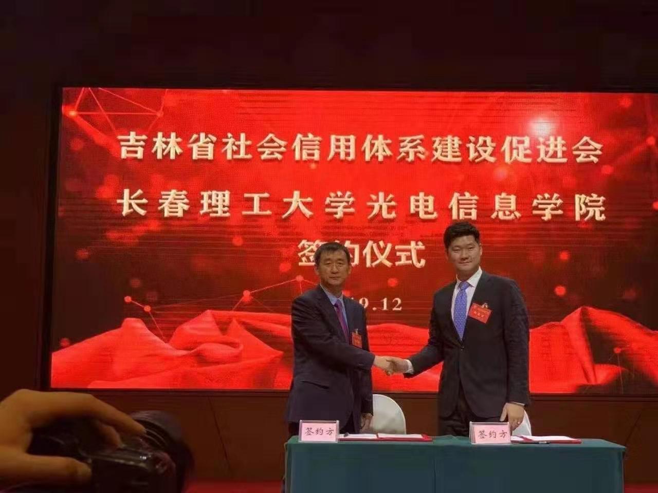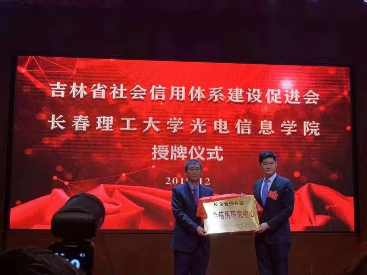 會(huì)上,新一屆協(xié)會(huì)理事會(huì)與金融機(jī)構(gòu)、企業(yè)、高校簽約,以實(shí)際舉動(dòng)提升企業(yè)信用管理水平,營造良好的社會(huì)信用環(huán)境,聯(lián)合各界共同推動(dòng)信用吉林建設(shè)。吉林省信促會(huì)與長春理工大學(xué)光電信息學(xué)院簽訂了戰(zhàn)略合作協(xié)議。這表示了我院致力于構(gòu)建誠信社會(huì),打造信用吉林的堅(jiān)定決心。吉林省社會(huì)信用體系建設(shè)促進(jìn)會(huì)執(zhí)行會(huì)長兼秘書長王忠紅為長春理工大學(xué)光電信息學(xué)院“社會(huì)信用研究中心 ”授牌,我院董事長王思迪接牌。同時(shí),我院董事長被評(píng)選為吉林省社會(huì)體系建設(shè)促進(jìn)會(huì)副會(huì)長。