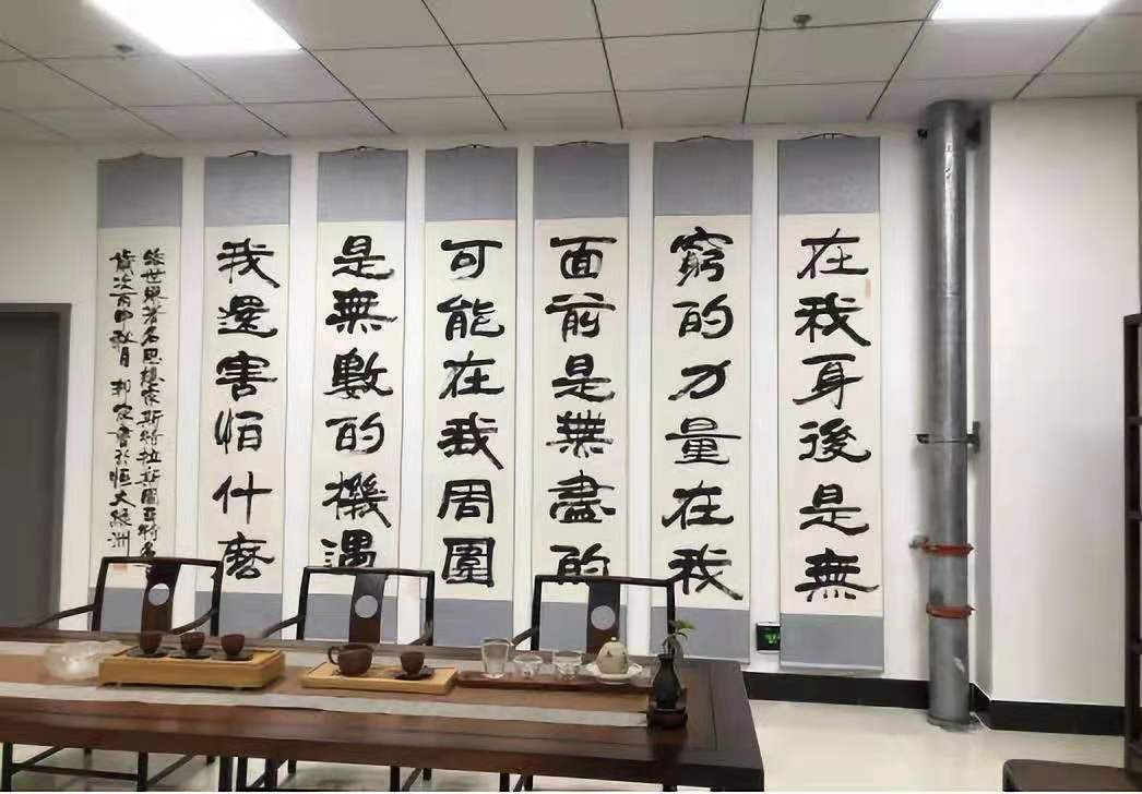 馬社學(xué)院全體教師首先參觀了感恩文化主題書法展,在參觀過程中大家仔細聆聽圖書館講解員老師的耐心講解,體會徐邦家先生通過書法傳達的精神內(nèi)涵。然后來到了學(xué)院重新打造的中華傳統(tǒng)文化教育基地—邦家書藝苑,從進門處徐邦家先生書寫的習近平總書記有關(guān)讀書的重要論述開始,再到書藝苑內(nèi)徐老捐贈的珍貴圖書,以及各種古典精美的茶具茶器古箏古琴,還有徐邦家先生風格多樣的墨寶,在這濃郁的中華傳統(tǒng)文化氛圍下,馬社學(xué)院老師們深深感受到了文字的力量和傳統(tǒng)文化帶給我們的文化自信。