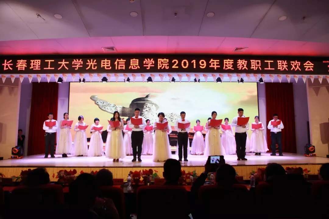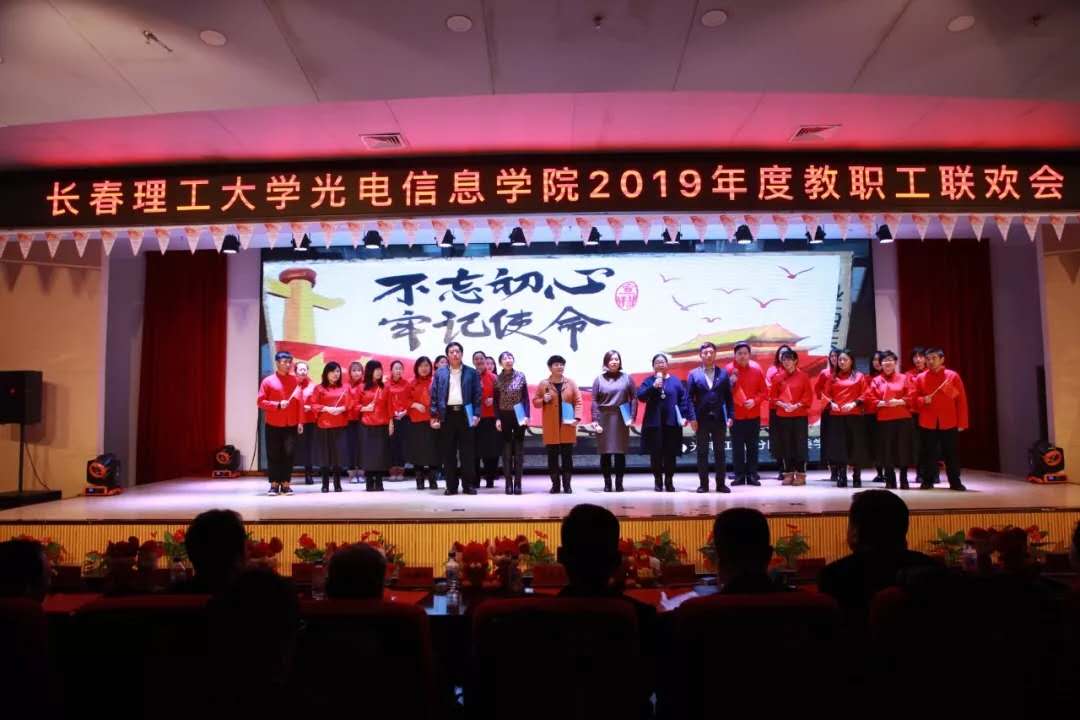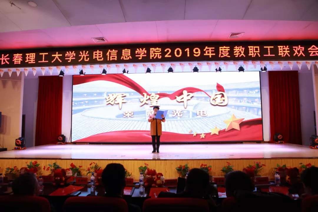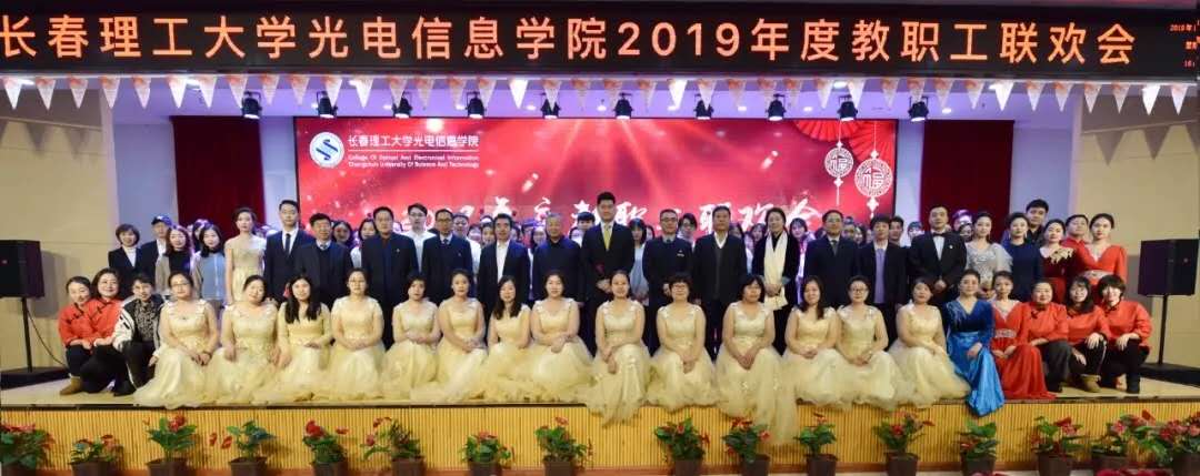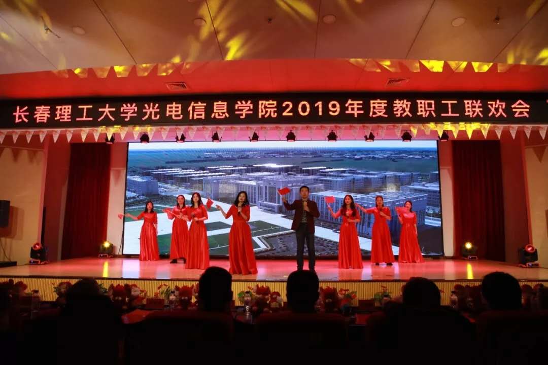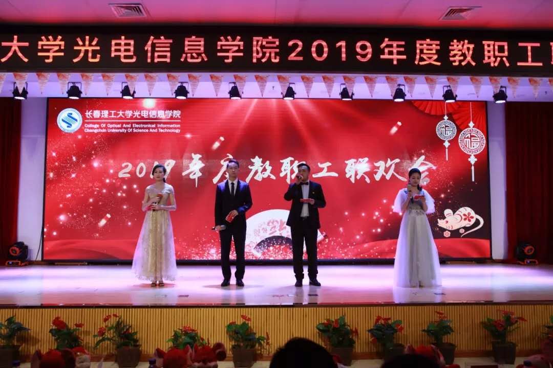 為貫徹落實(shí)黨的十九大精神,弘揚(yáng)和踐行社會(huì)主義核心價(jià)值觀,各黨總支、直屬黨支部帶領(lǐng)大家精心組織,積極謀劃,凝心聚力,愛國(guó)愛校,展現(xiàn)全校教職工樂(lè)于奉獻(xiàn)、積極向上的精神風(fēng)貌,營(yíng)造歡樂(lè)祥和、團(tuán)結(jié)奮進(jìn)的校園文化,2019年12月30日下午,長(zhǎng)春理工大學(xué)光電信息學(xué)院2019年度教職工聯(lián)歡會(huì)在圖書館報(bào)告廳隆重召開,學(xué)校董事長(zhǎng)王思迪、顧問(wèn)王富遠(yuǎn)、董事陳洪秋、學(xué)校領(lǐng)導(dǎo)班子成員、國(guó)際房地產(chǎn)代表及全體教職員工參加了本次聯(lián)歡會(huì)。聯(lián)歡會(huì)由人事處王芳旭、學(xué)生處劉京京、電子工程分院錢爽、招生就業(yè)處王晴主持。