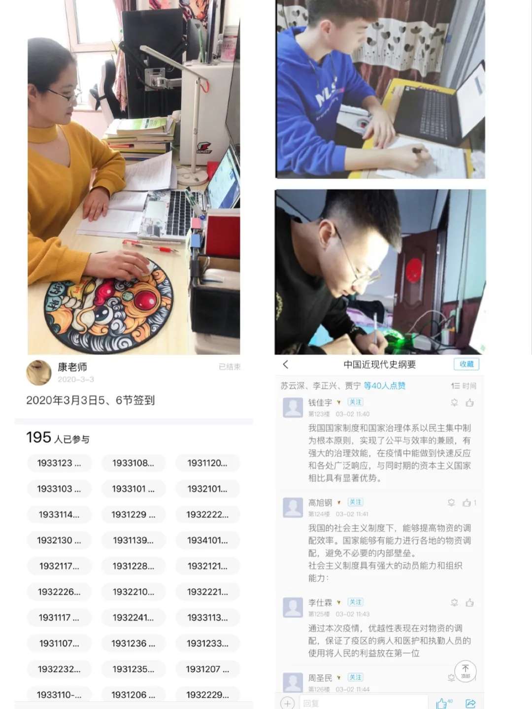 3月2日,在全校師生的共同期盼下,以一場《重溫歷史 打贏戰(zhàn)“疫”》為專題的思政課正式開始。老師通過線上教學(xué)平臺(tái)發(fā)布簽到、討論、測驗(yàn)、投票、問卷、作業(yè)等方式為同學(xué)們答疑解惑。教學(xué)中結(jié)合歷史與現(xiàn)實(shí),將本次疫情作為思政課的“活教材”,講出每段全國人民共同抗“疫”的故事。