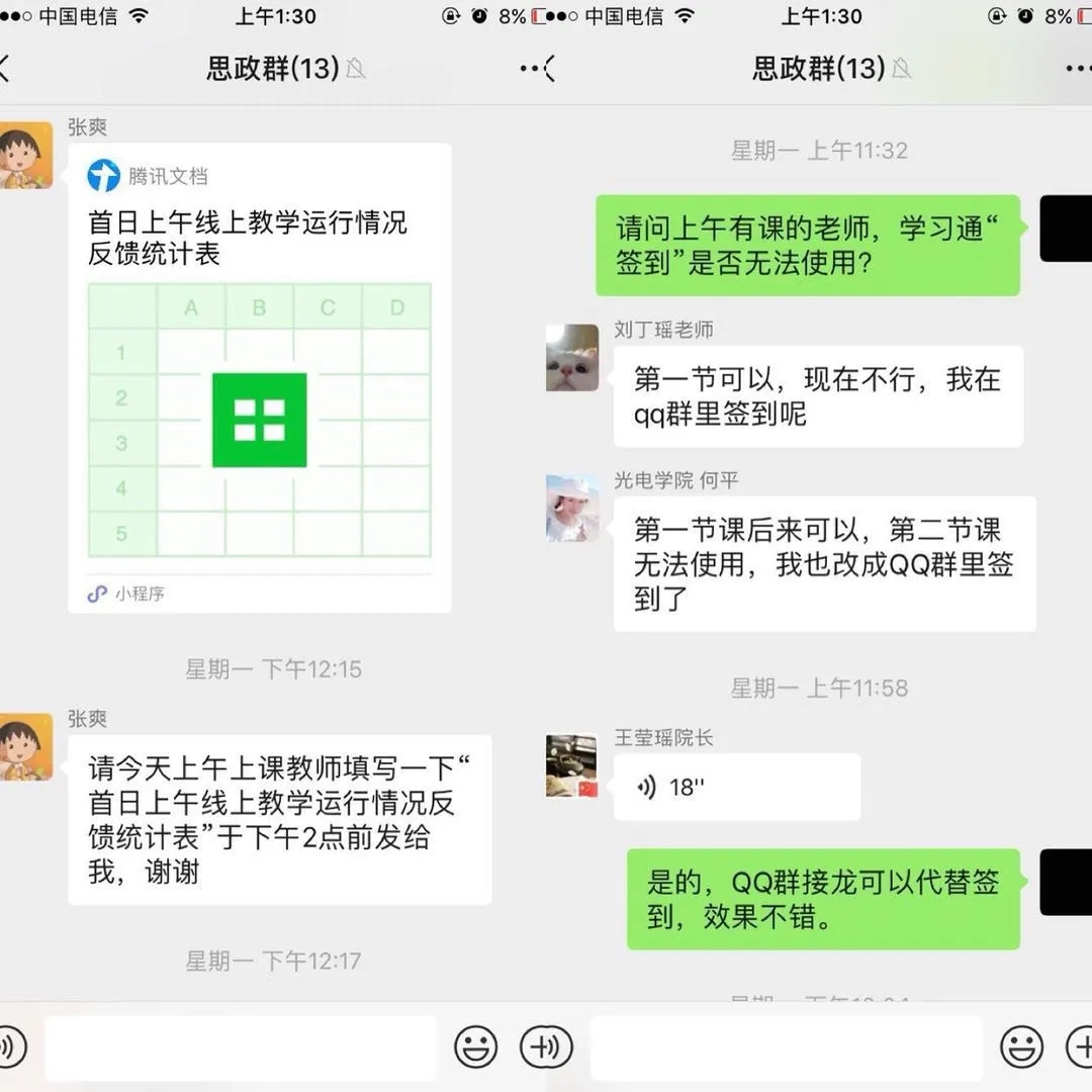 為保證線上教學(xué)順利進(jìn)行,馬社學(xué)院全體教師積極參加網(wǎng)絡(luò)教學(xué)平臺(tái)培訓(xùn),確定了以超星學(xué)習(xí)通為主、QQ群課堂為輔的教學(xué)平臺(tái),參考中國大學(xué)MOOC、騰訊智慧高校、智慧樹等優(yōu)質(zhì)教學(xué)資源,借助網(wǎng)絡(luò)平臺(tái)進(jìn)行集中備課,確保與每一位學(xué)生建立聯(lián)系,實(shí)施線上模擬教學(xué),討論教學(xué)中突發(fā)問題應(yīng)急預(yù)案,保證教學(xué)全程“不掉線”。