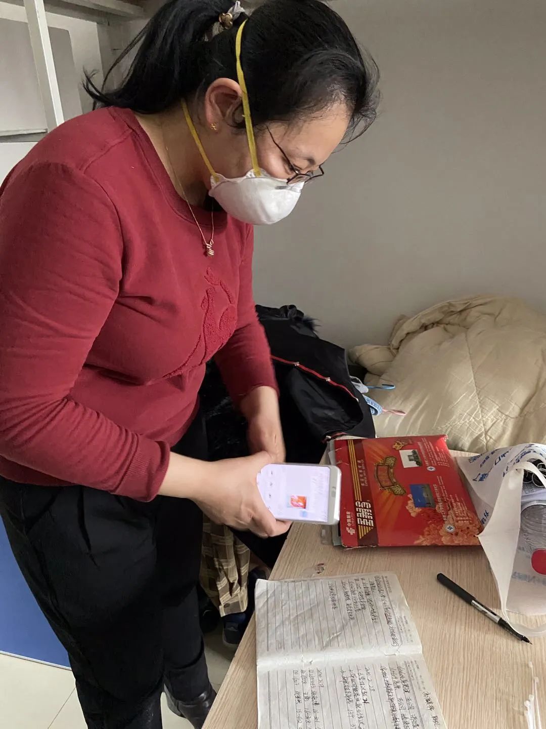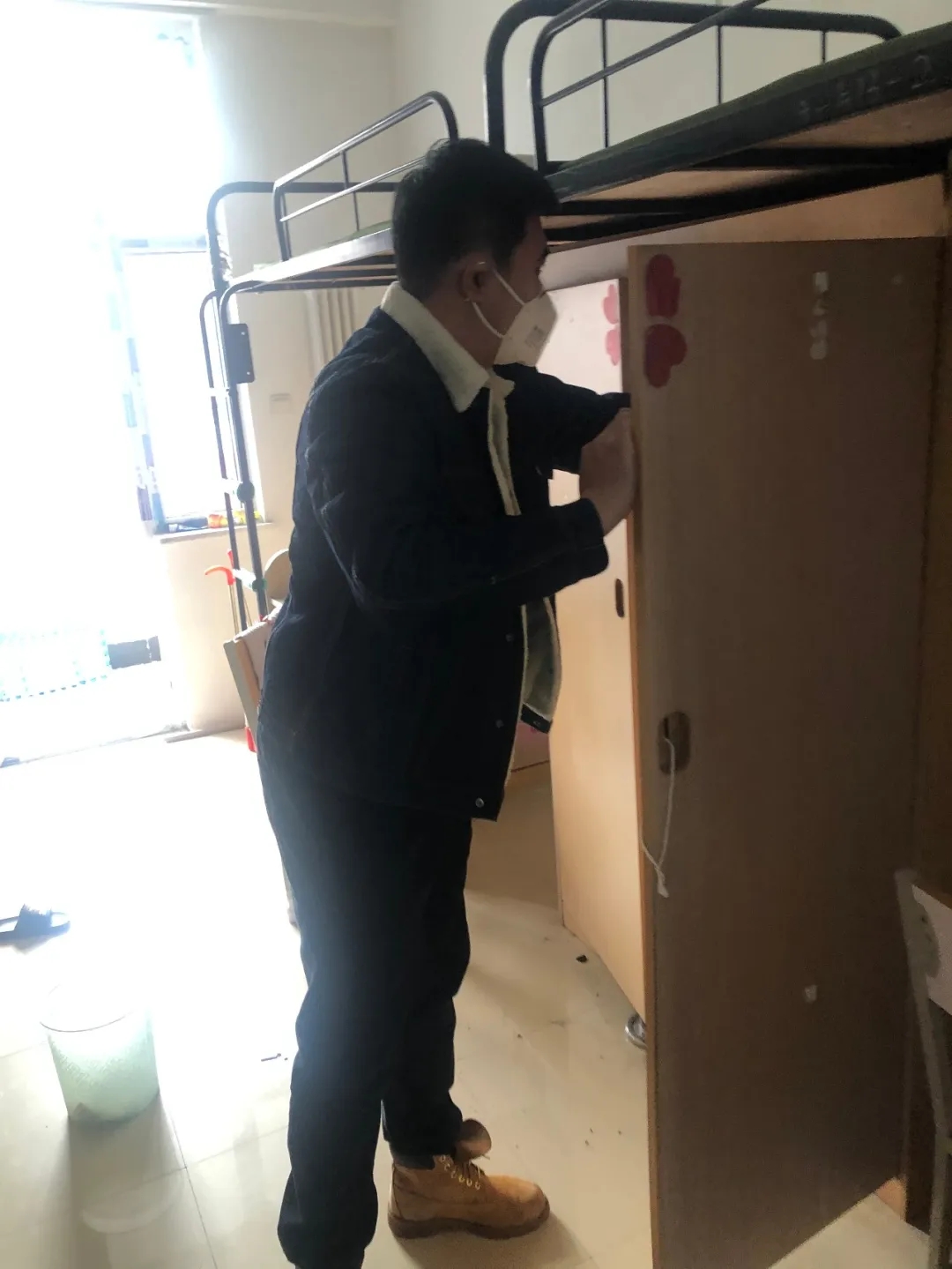 采訪中,機電工程分院徐韜老師的筆記本映入了我們的視線,筆記本上慢慢的記載著學生們的物品和需求,她說在整理寢室之前,要先將學生們的物品列清單,然后通過打電話、發(fā)微信以及視頻等方式與學生們溝通,確認貴重的物品的存放地點,并做好記錄,最后再打掃寢室衛(wèi)生。由于很多學生將自己的鞋子都放在床下,她要跪在地上將床下的所有物品清理干凈,在上鋪的床上有的同學安裝了小桌子,也要爬梯子把它拿下來整理裝箱。
