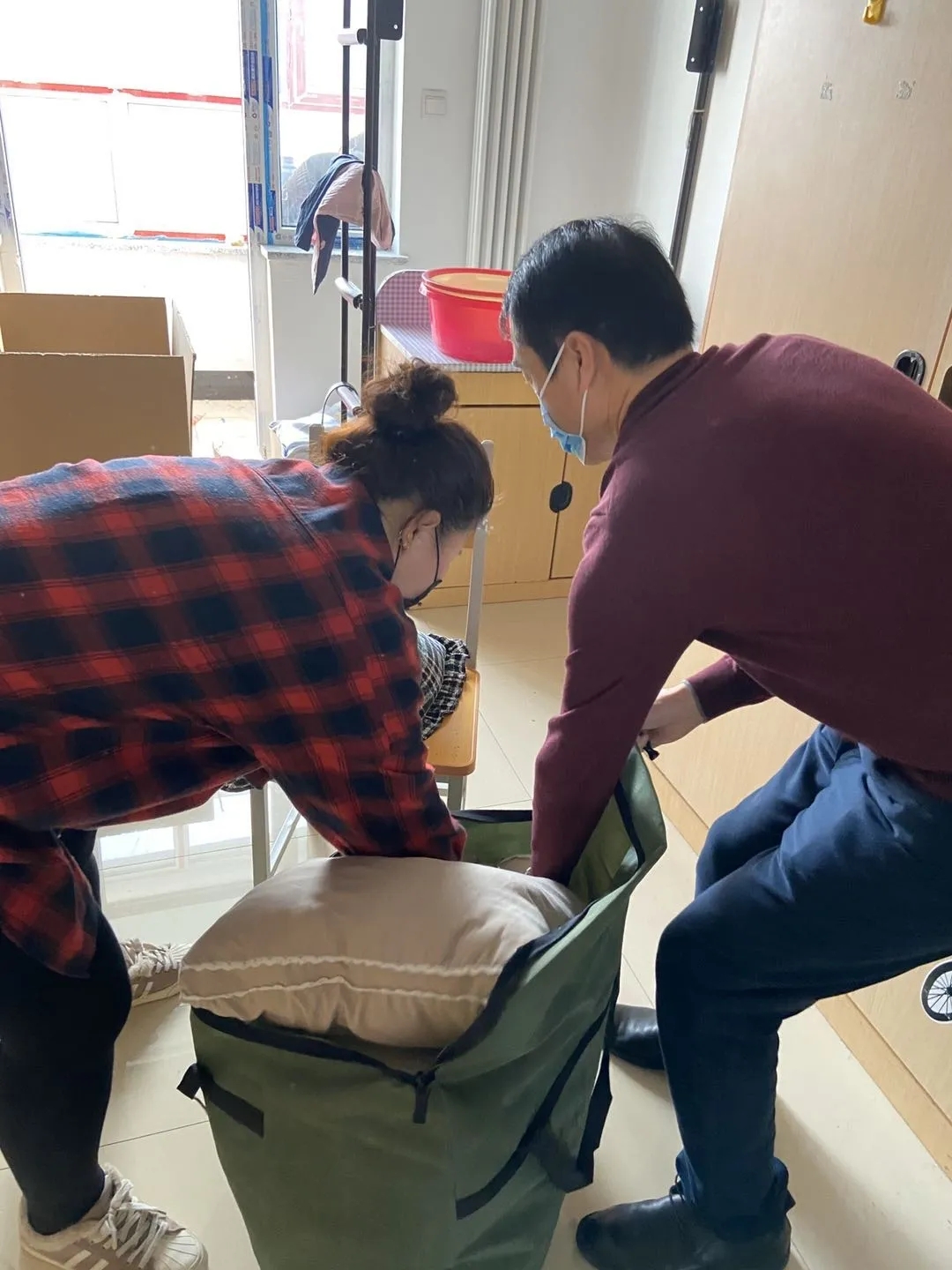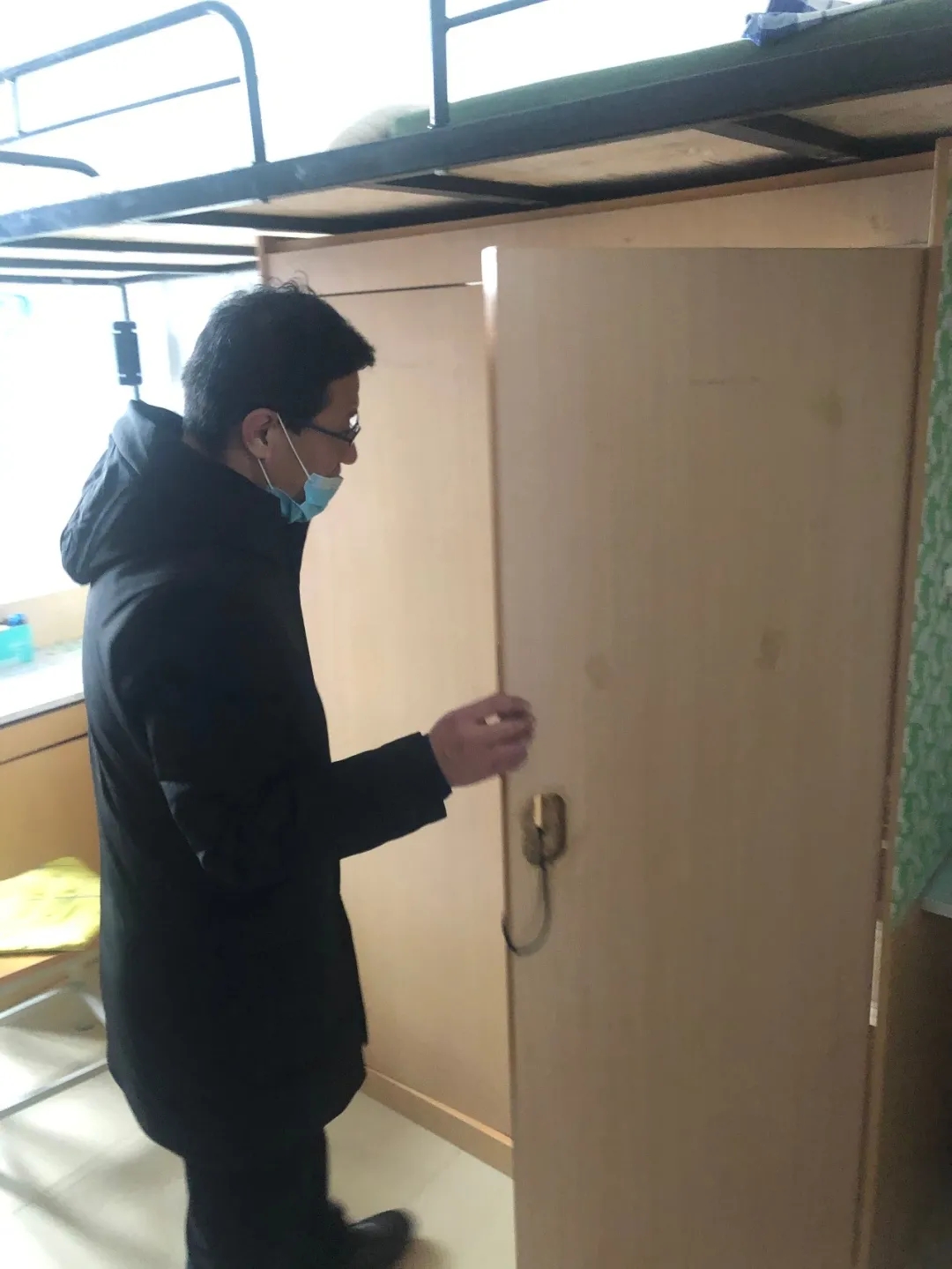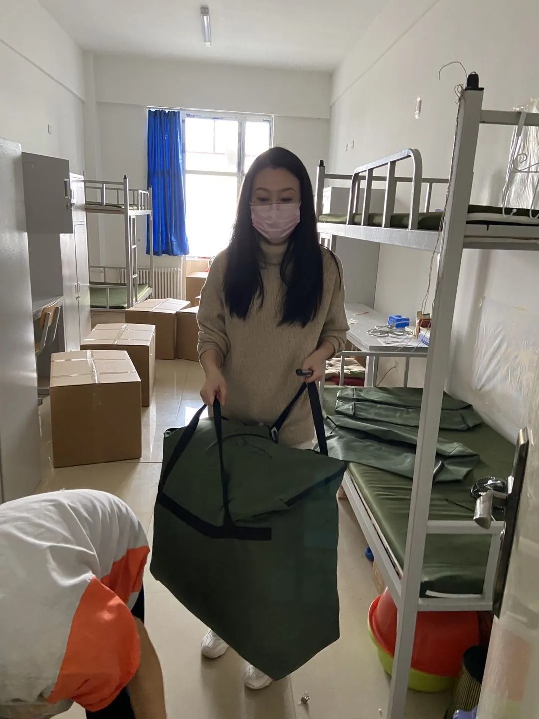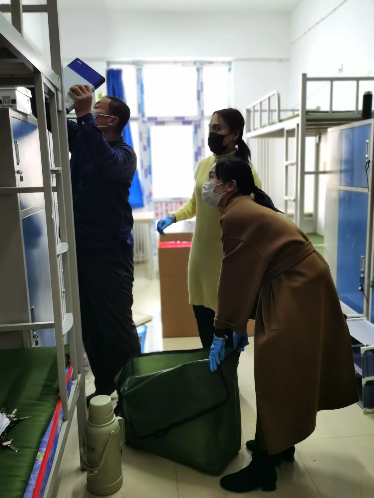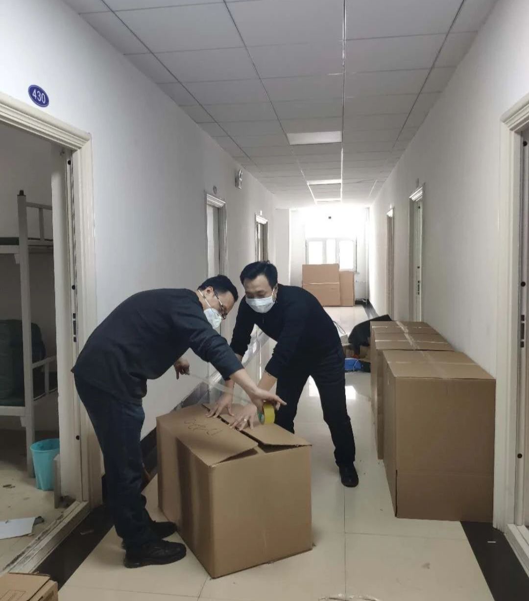 在落實隔離區(qū)的工作中,后勤的工人和輔導員將涉及到的每個學生的物品分類整理,打包,做好標記,存放。經(jīng)過我們輔導員老師細致的工作和耐心的引導,得到了廣大同學的支持和理解。