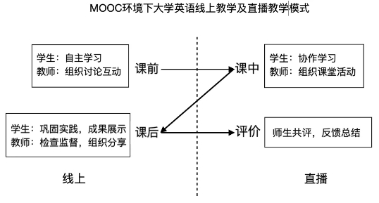 依托Umoocs和we平臺(tái)的大學(xué)英語(yǔ)線上教學(xué)模式絕不僅僅局限于線上的直播課程,從本質(zhì)上說,它是行為主義、聯(lián)通主義、建構(gòu)主義等學(xué)習(xí)理論的混合。利用現(xiàn)代化的互聯(lián)網(wǎng)技術(shù)與資源,有效的增加學(xué)生對(duì)于英語(yǔ)學(xué)習(xí)參與的機(jī)會(huì),讓學(xué)生有備而來,避免了學(xué)生被動(dòng)學(xué)習(xí)的狀態(tài)。與此同時(shí),教師也可以通過線上平臺(tái)及時(shí)了解學(xué)生學(xué)習(xí)情況,不斷改進(jìn)教學(xué)內(nèi)容與方法,優(yōu)化課堂效果。
