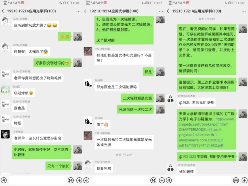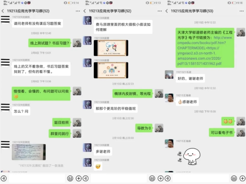 有同學(xué)提出:只看平臺(tái)上的資料,有些地方理解不了,能不能網(wǎng)上買書?我又聯(lián)系了其他學(xué)校的老師,他們給我提供了電子書。這樣,學(xué)生們開學(xué)前的應(yīng)用光學(xué)課程預(yù)習(xí)階段順利開展起來了。