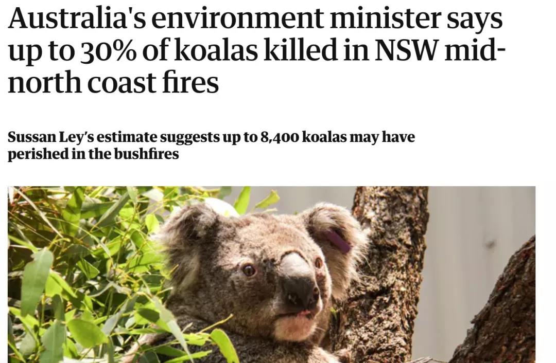 僅僅只是新州的北海岸就有30%,大約8400只考拉死于恐怖大火內(nèi)。
