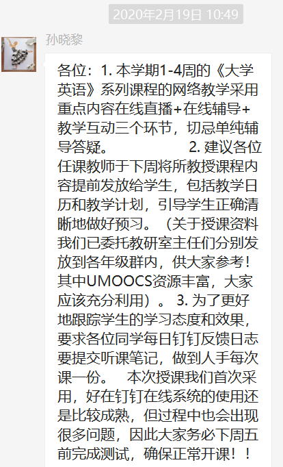 不飽食以終日,不棄功于寸陰——依托釘釘,結合慕課等平臺開展的網絡教學