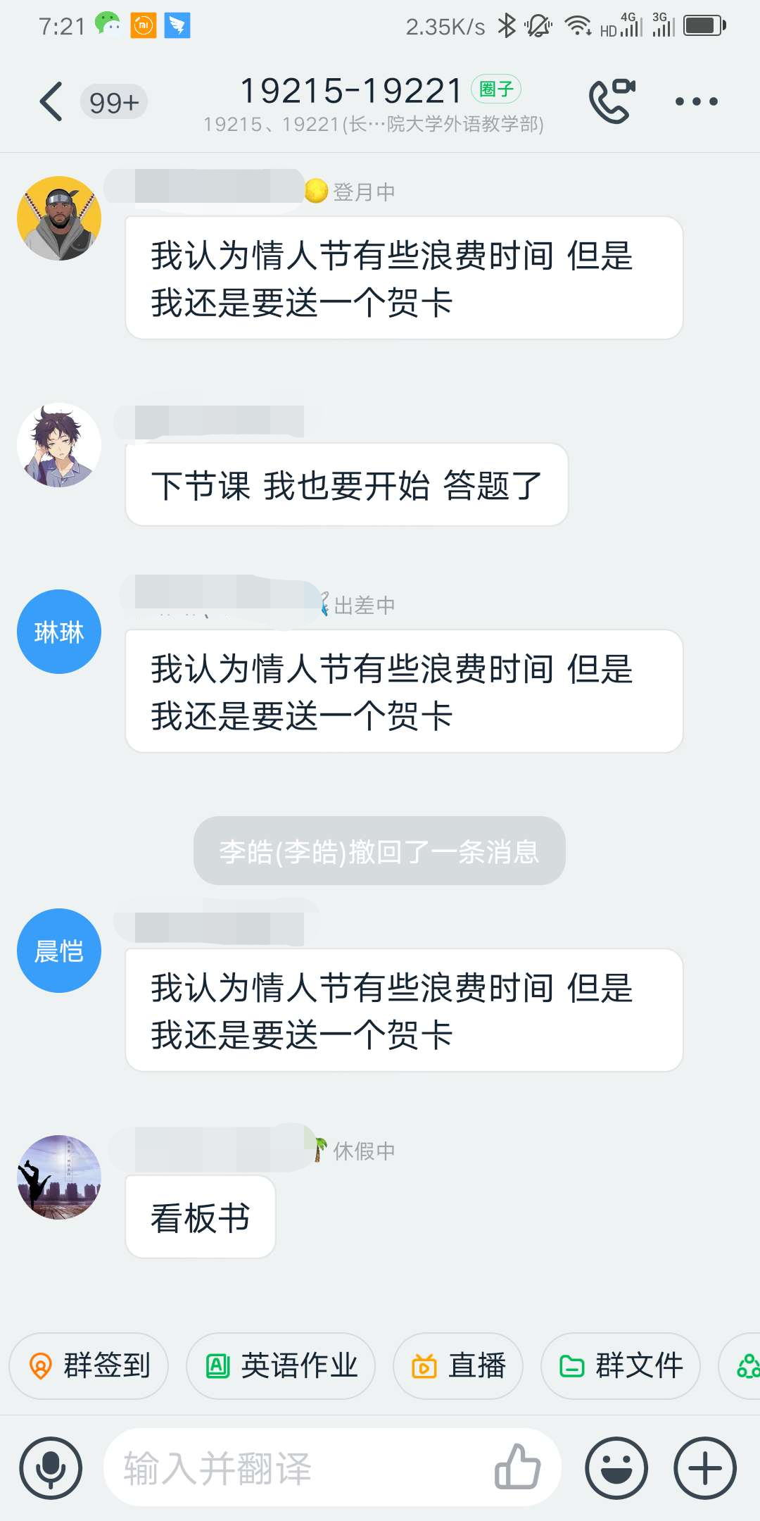無論何種平臺,最后服務的永遠是教學,所以教師應該把大量的精力放在如何有效組織線上教學,提高教學有效性上。為了保證同學們能夠更好的自主學習,我還為學生們推薦了很多如四級聽力、四級單詞等自主學習英語的軟件。
