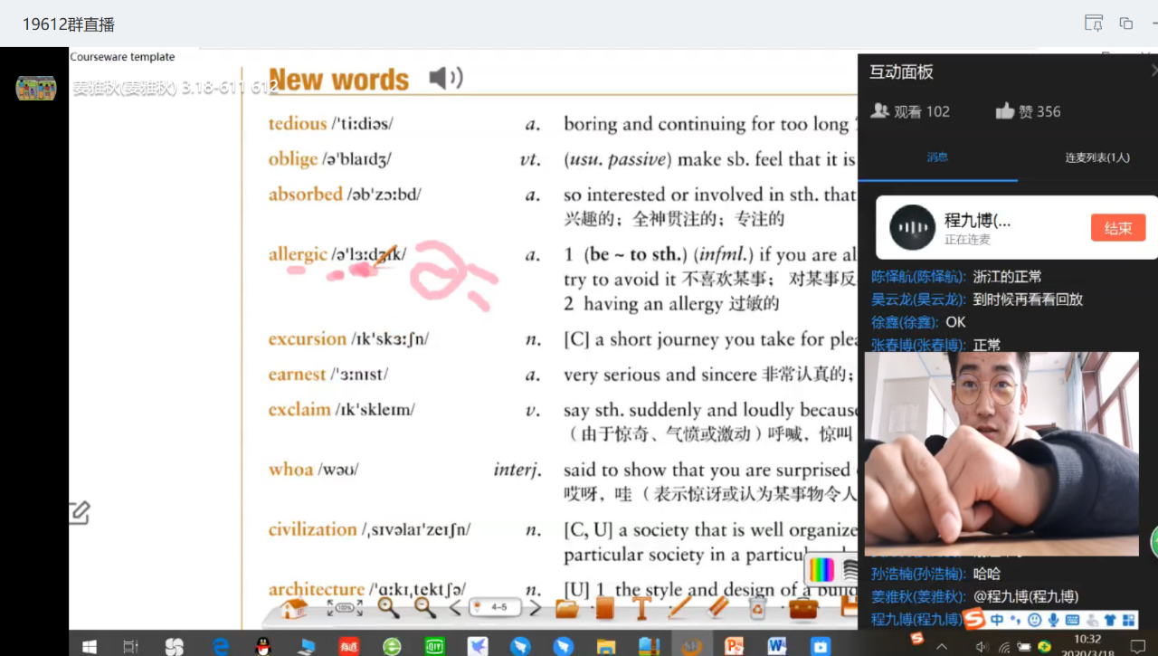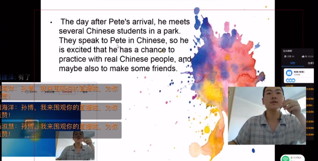 同時為了課程更加流暢,我也特此更換了更好的電腦設備,確保網絡和電腦都不卡,流暢的進行直播。即使不能與學生們面對面,我也希望從語言組織以及高亢充滿激情的的語調上,盡可能給學生營造一個熱情而生動的直播課堂。