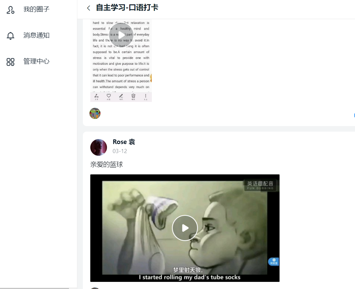 四.響應大外部制定的學生學習計劃內容,我為學生設置了釘釘圈里的打卡話題,學生按照相應話題去打卡,方便教師查看和同學之間的互相分享。(下圖)