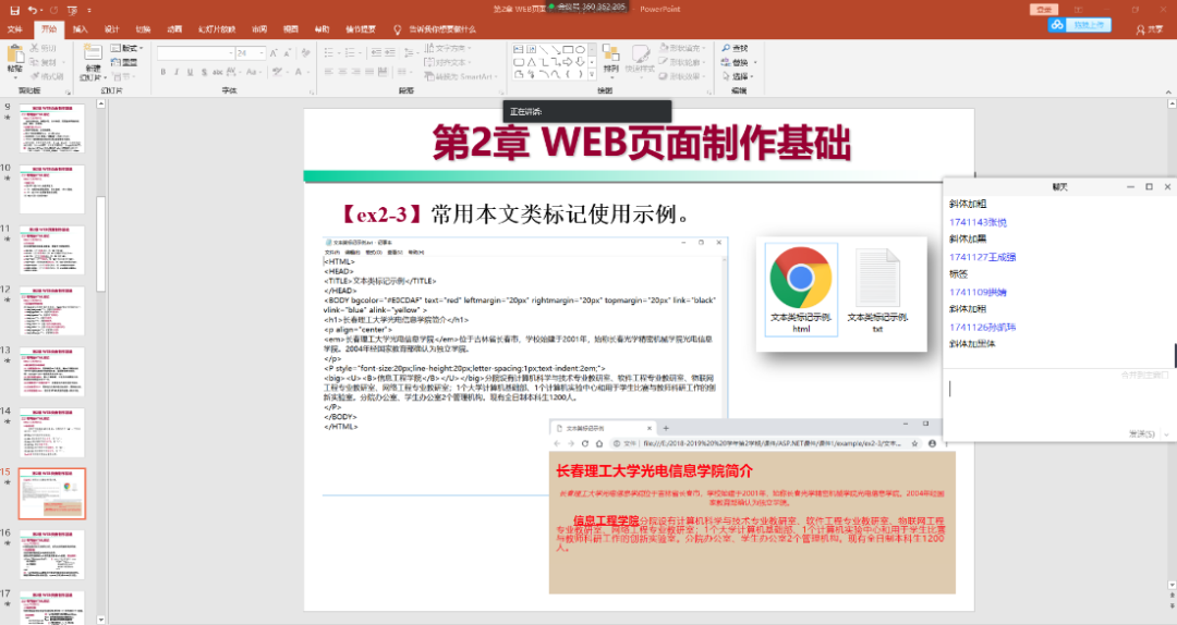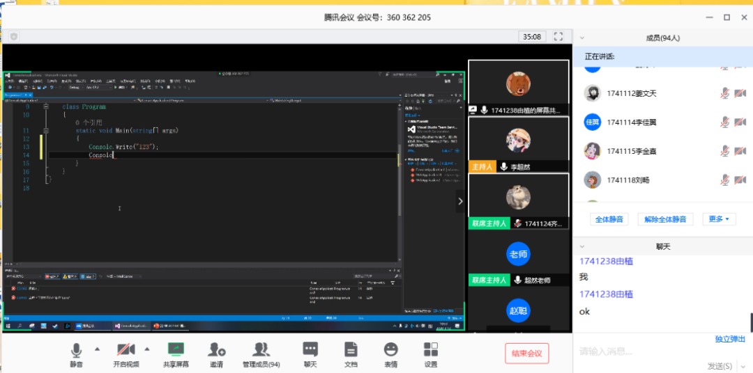 學生分享屏幕正在為大家演示程序