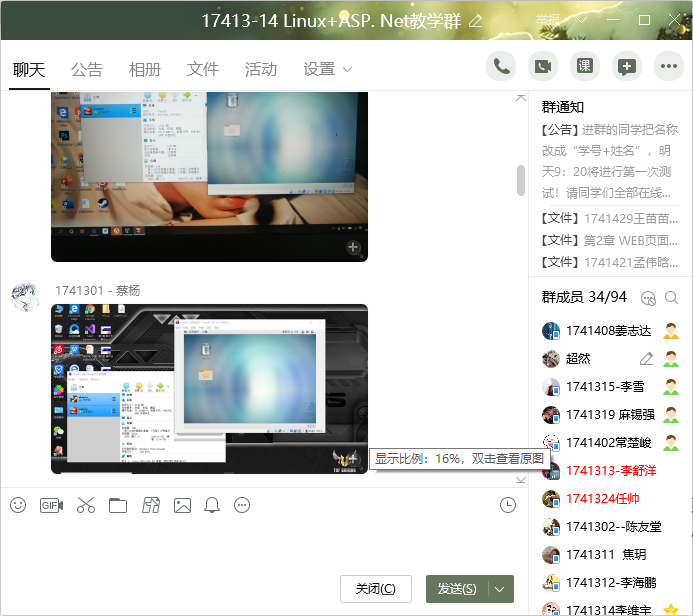 Linux操作系統(tǒng)和ASP.NET程序設計實際的操作性比較強,會要求學生必須自己動手做,把整個過程通過視頻發(fā)布到群里,這樣才算是完成,這樣的方式同學每個人都能認真的對待,有的同學在安裝軟件或者寫程序時會遇到各種bug,但自己也不輕言放棄,不斷更改,一遍不行兩遍,有時甚至十幾遍,有時深夜我還會接收到學生的發(fā)過來問問題的信息,這種精神很讓我感動。