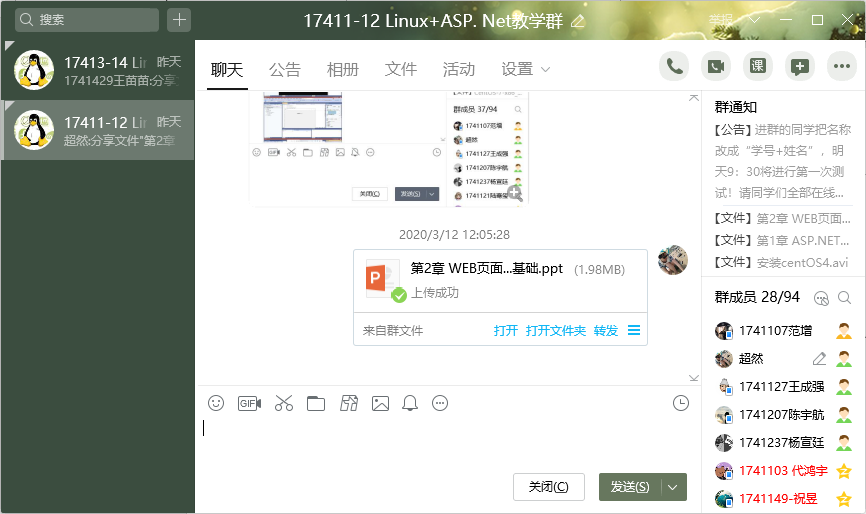 通過QQ軟件建立QQ群聊,把學生通過群聊的方式聯(lián)系在一起。