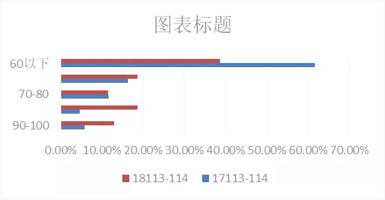 在期末考試成績中,我選擇了只有線下教學的17113-114兩個班級和“線上+線下”教學的18113-114班級進行對比。在圖3中,我們可以看到18級的成績明顯好于17級。