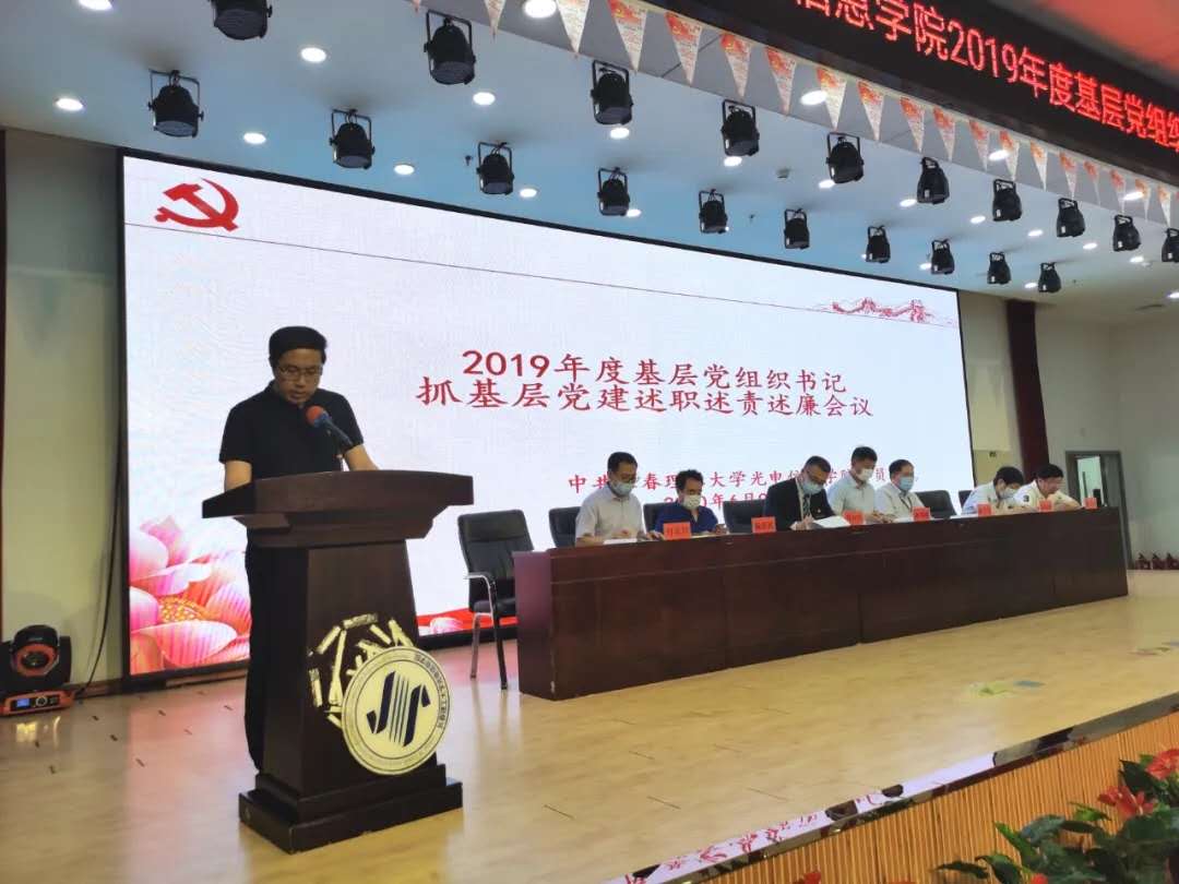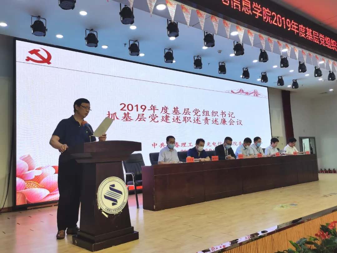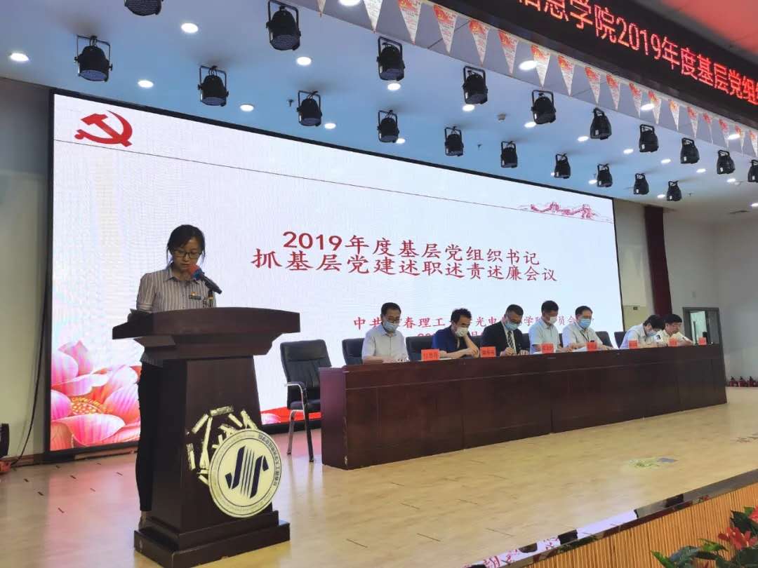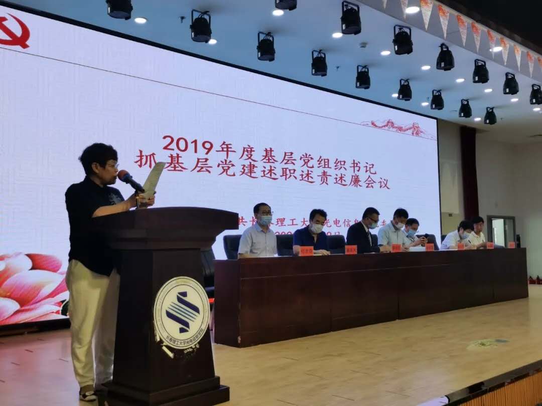會(huì)上,12位基層黨組織書(shū)記分別從成績(jī)清單、問(wèn)題清單和任務(wù)清單3個(gè)方面,重點(diǎn)圍繞2019年履行抓基層黨建工作責(zé)任情況、開(kāi)展“不忘初心、牢記使命”主題教育情況、學(xué)習(xí)宣傳和貫徹落實(shí)黨內(nèi)有關(guān)法規(guī)制度情況、指導(dǎo)推動(dòng)基層黨建重點(diǎn)任務(wù)完成情況、落實(shí)全面從嚴(yán)治黨主體責(zé)任情況等內(nèi)容,進(jìn)行現(xiàn)場(chǎng)會(huì)議述職述責(zé)述廉,文化傳媒學(xué)院和機(jī)關(guān)三直屬黨支部以書(shū)面形式報(bào)告。