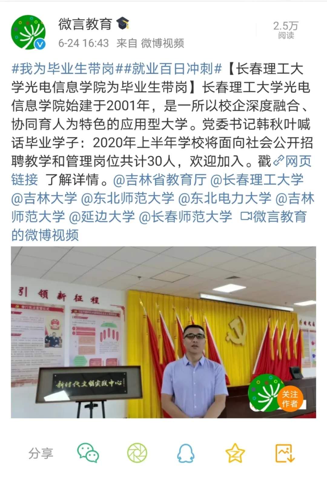 教育部官方微博微言教育發(fā)布:長春理工大學(xué)光電信息學(xué)院#為畢業(yè)生帶崗#