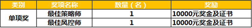 省賽及國賽階段,策略師和風(fēng)控師按照要求分別定期提交策略報告和風(fēng)控報告,由大賽組委會評選最佳策略師和最佳風(fēng)控師各一名,分別獲得10000元獎金及證書。