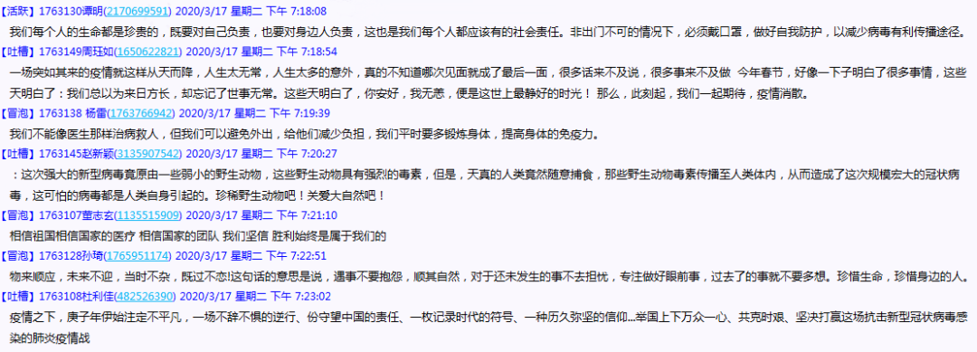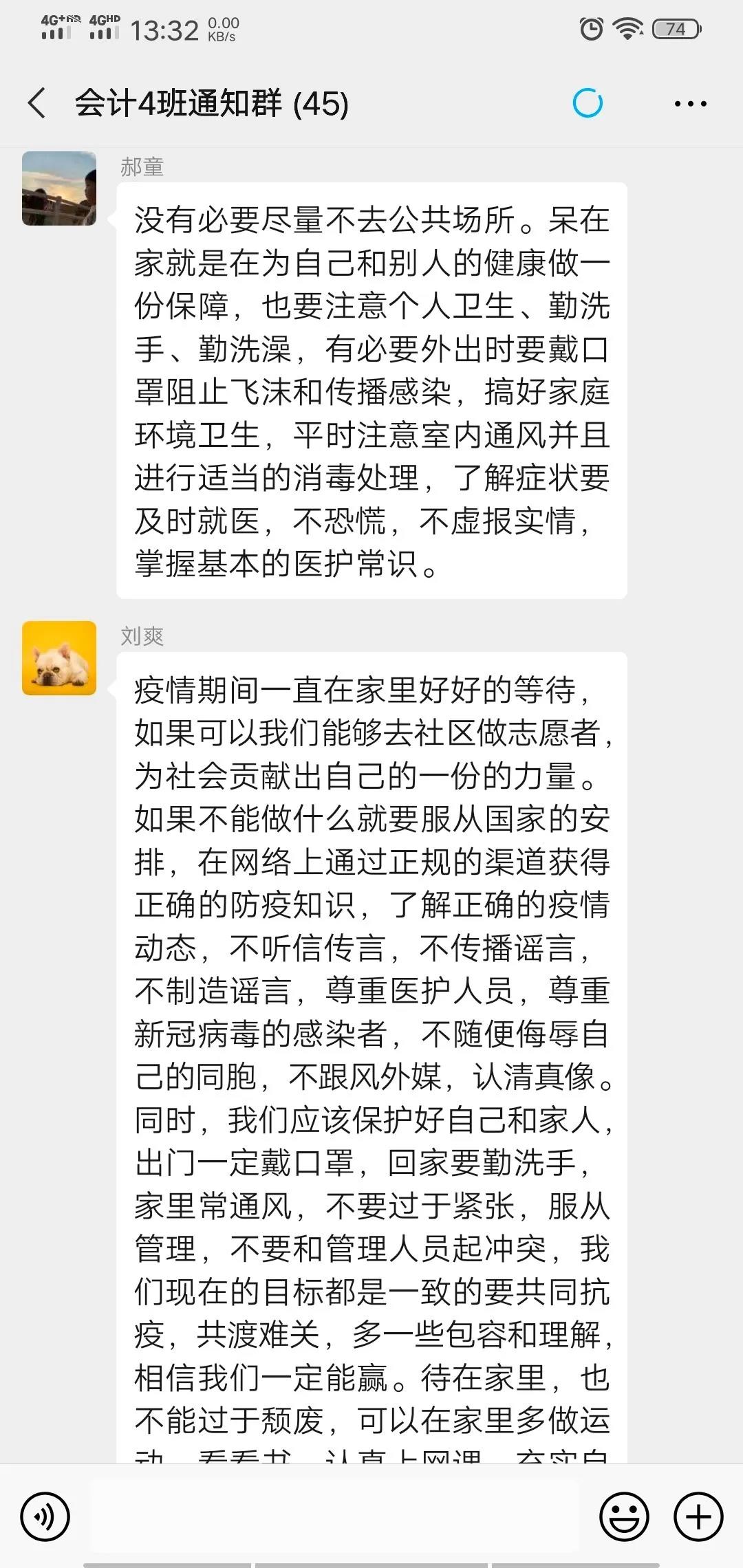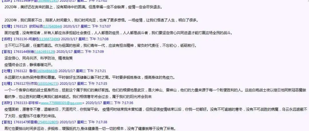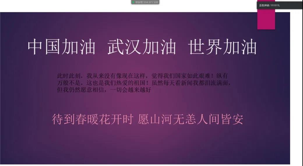 本次線上班會各班級成員積極參加并發(fā)表自己的言論,字里行間無不流露著對抗擊疫情的積極