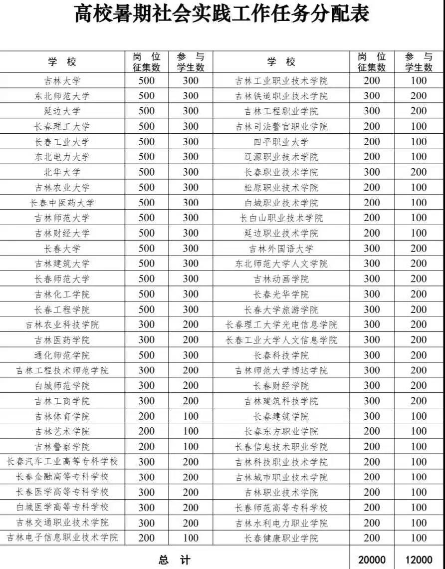 為引導(dǎo)廣大青年學(xué)生深入學(xué)習(xí)貫徹習(xí)近平新時代中國特色社會主義思想,扎根吉林大地了解社情民情,通過參與社會實踐服務(wù)家鄉(xiāng)經(jīng)濟(jì)社會發(fā)展,按照團(tuán)中央《關(guān)于在疫情防控常態(tài)化形勢下做好2020年全國大中專學(xué)生志愿者暑期文化科技衛(wèi)生"三下鄉(xiāng)"社會實踐工作的通知》要求,結(jié)合我省疫情防控常態(tài)化形勢,決定開展吉林省大中專學(xué)生"三下鄉(xiāng)"社會實踐活動。具體通知如下:
