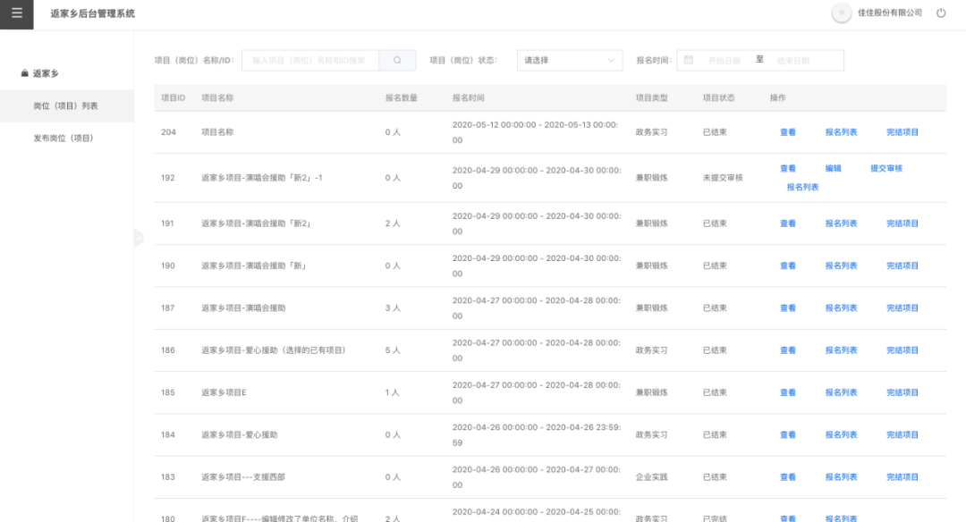 點擊【崗位(項目)列表】
