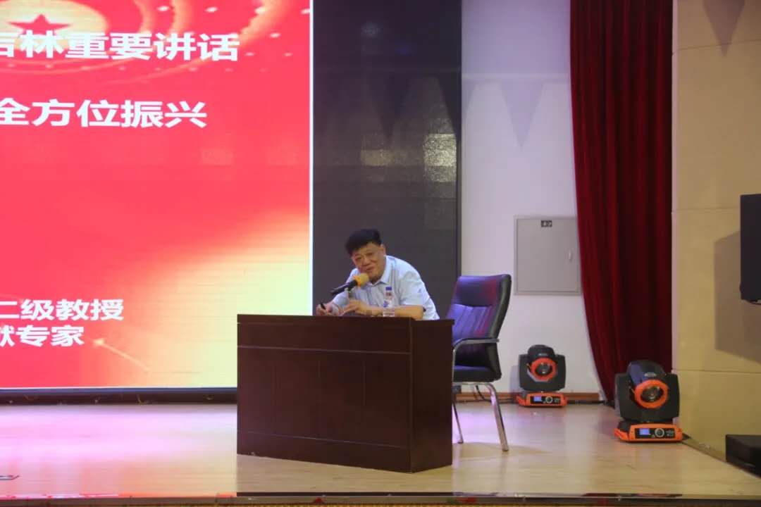 王健教授,中共長(zhǎng)春市委黨校原校委委員,國(guó)家二級(jí)教授,以《學(xué)習(xí)習(xí)近平總書記考察吉林重要講話重要指示精神,推動(dòng)吉林全面振興,全方位振興》為題對(duì)國(guó)內(nèi)國(guó)際形勢(shì)進(jìn)行了分析。深入闡述黨的十八大以來習(xí)近平總書記先后六次到東北調(diào)研,通過一個(gè)個(gè)生動(dòng)案例,向全校師生闡釋了振興東北的戰(zhàn)略意義,把糧食安全擺在突出位置的重要性以及推動(dòng)黨組織向基層延伸等國(guó)家大政方針。