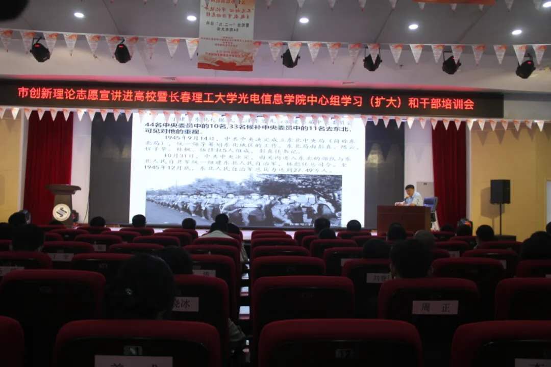 為了深入學(xué)習(xí)貫徹習(xí)近平總書記在吉林考察時(shí)的重要講話精神,提升我校黨員干部的理論學(xué)習(xí)水平。2020 年 9 月 2 日下午在長(zhǎng)春理工大學(xué)光電信息圖書館報(bào)告廳舉行市創(chuàng)新理論志愿宣講進(jìn)高校暨長(zhǎng)春理工大學(xué)光電信息學(xué)院中心組學(xué)習(xí)和干部培訓(xùn)會(huì)。