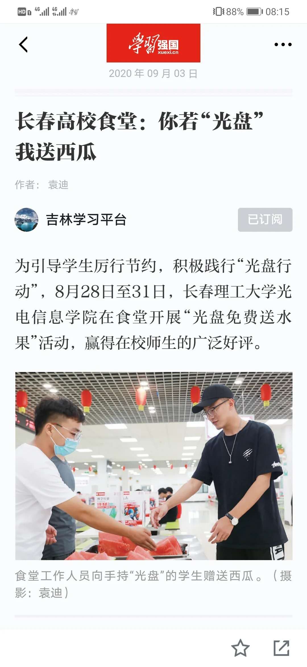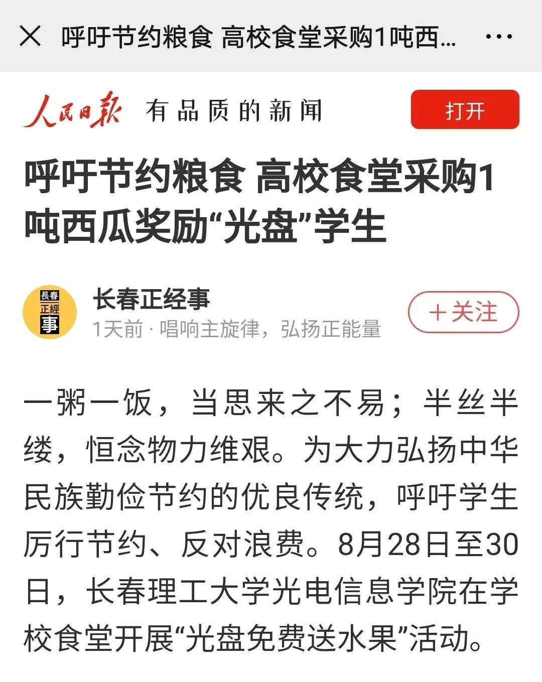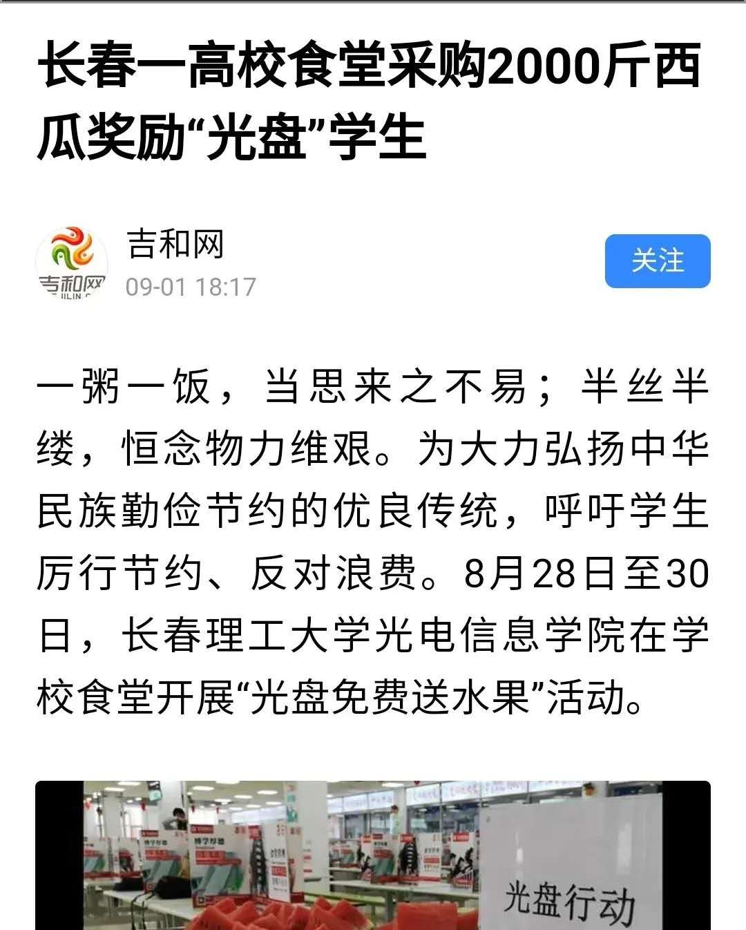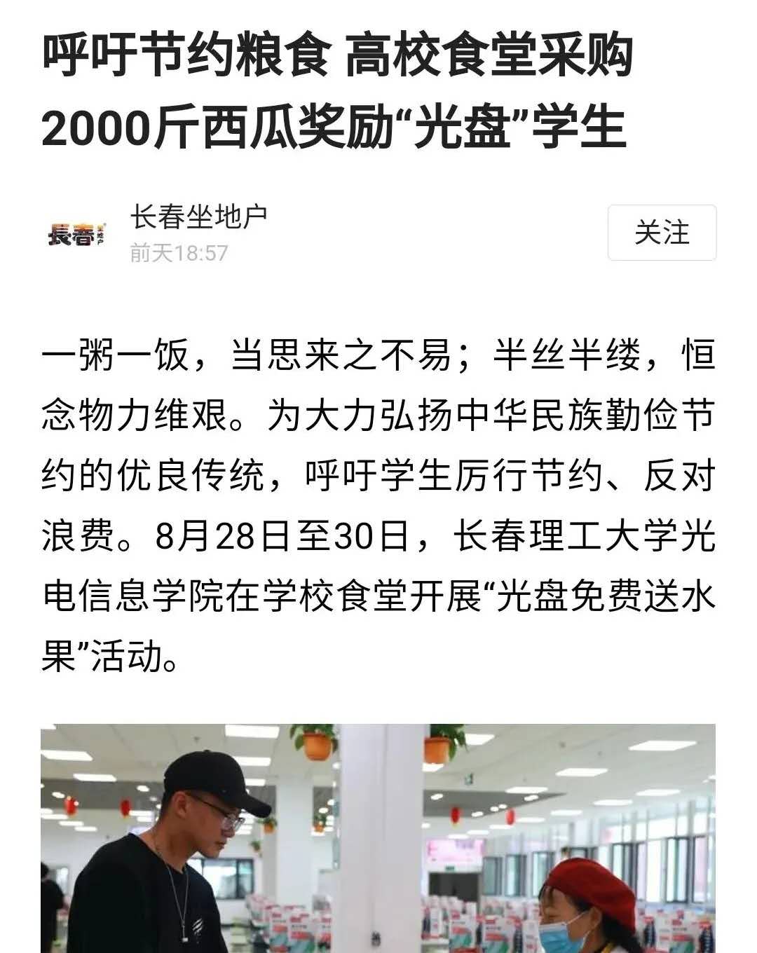 長(zhǎng)春理工大學(xué)光電信息學(xué)院于 2020 年 8 月 28 日 - 30 日在學(xué)校食堂開(kāi)展“光盤免費(fèi)送西瓜”活動(dòng)。