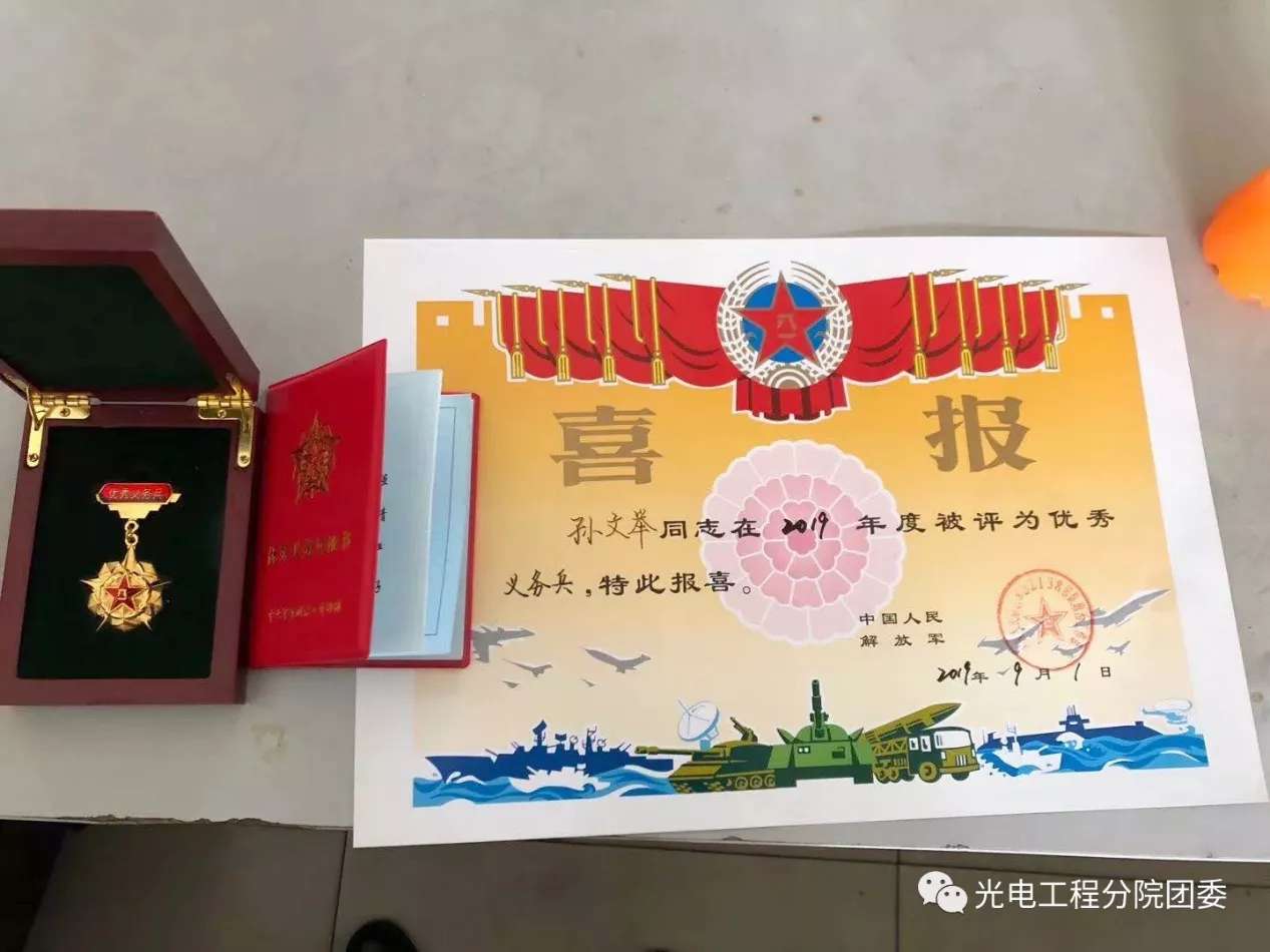 孫文舉同學在部隊獲得優(yōu)秀義務兵榮譽稱號