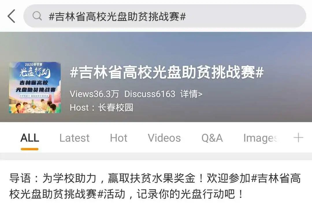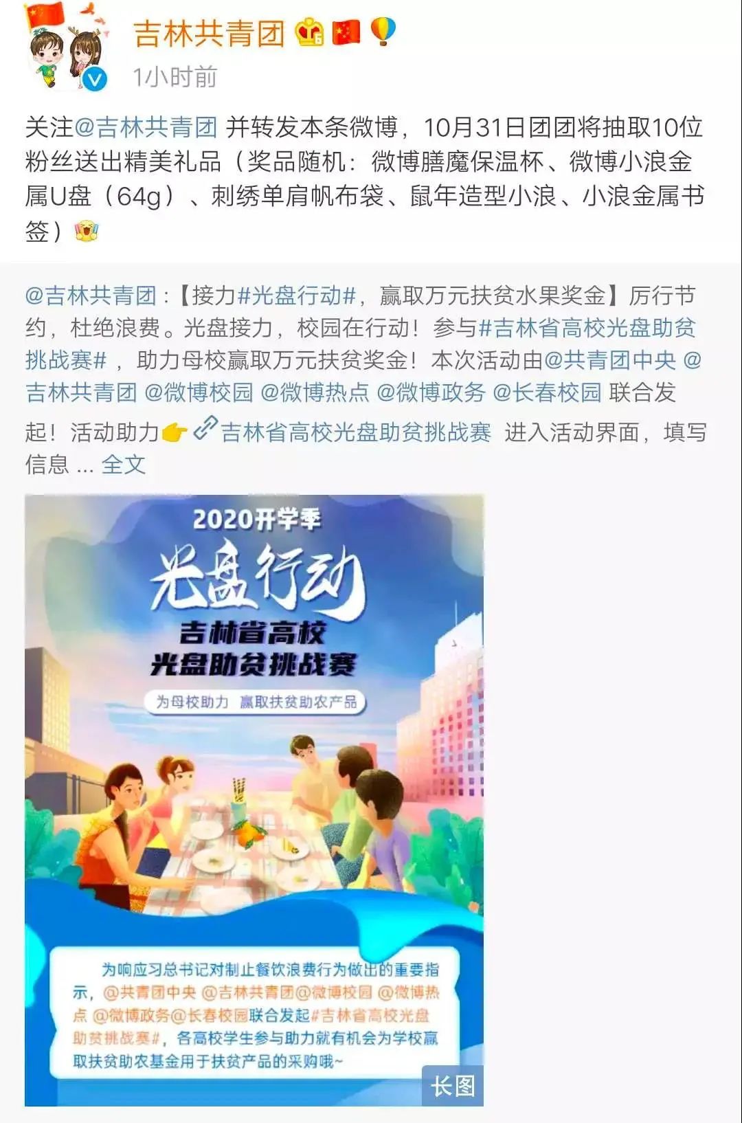 帶話題 #吉林省高校光盤助貧挑戰(zhàn)賽# 發(fā)布微博