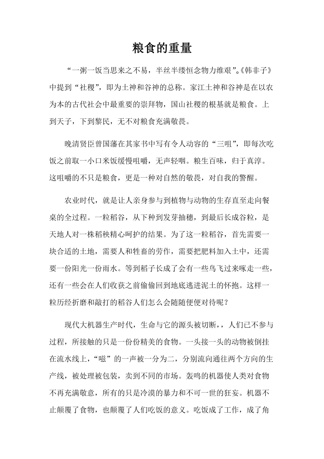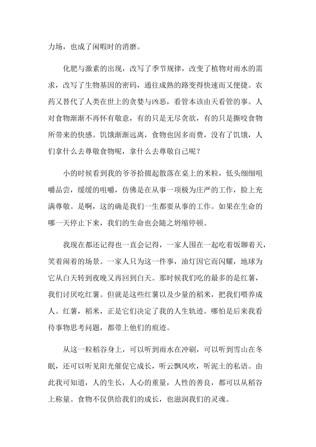 “由此我可知道,人的生長,人心的重量,人性的善良,都可以從稻谷上稱量。”