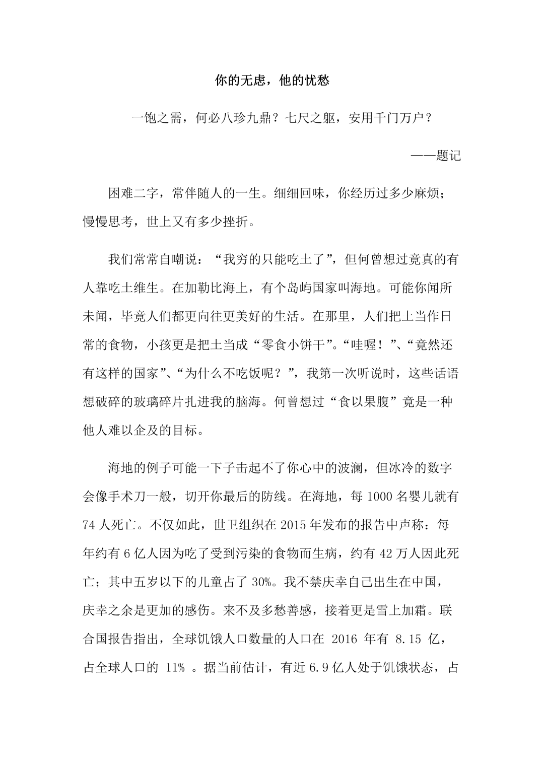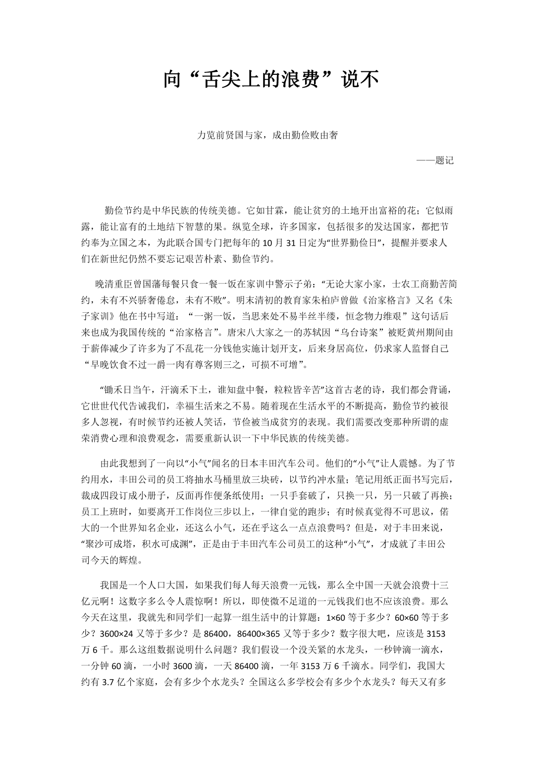 “有人說,節(jié)約不是貧窮的標志,它是全人類的一種責任,它應該是全球每一個公民應具備的素質(zhì)。”