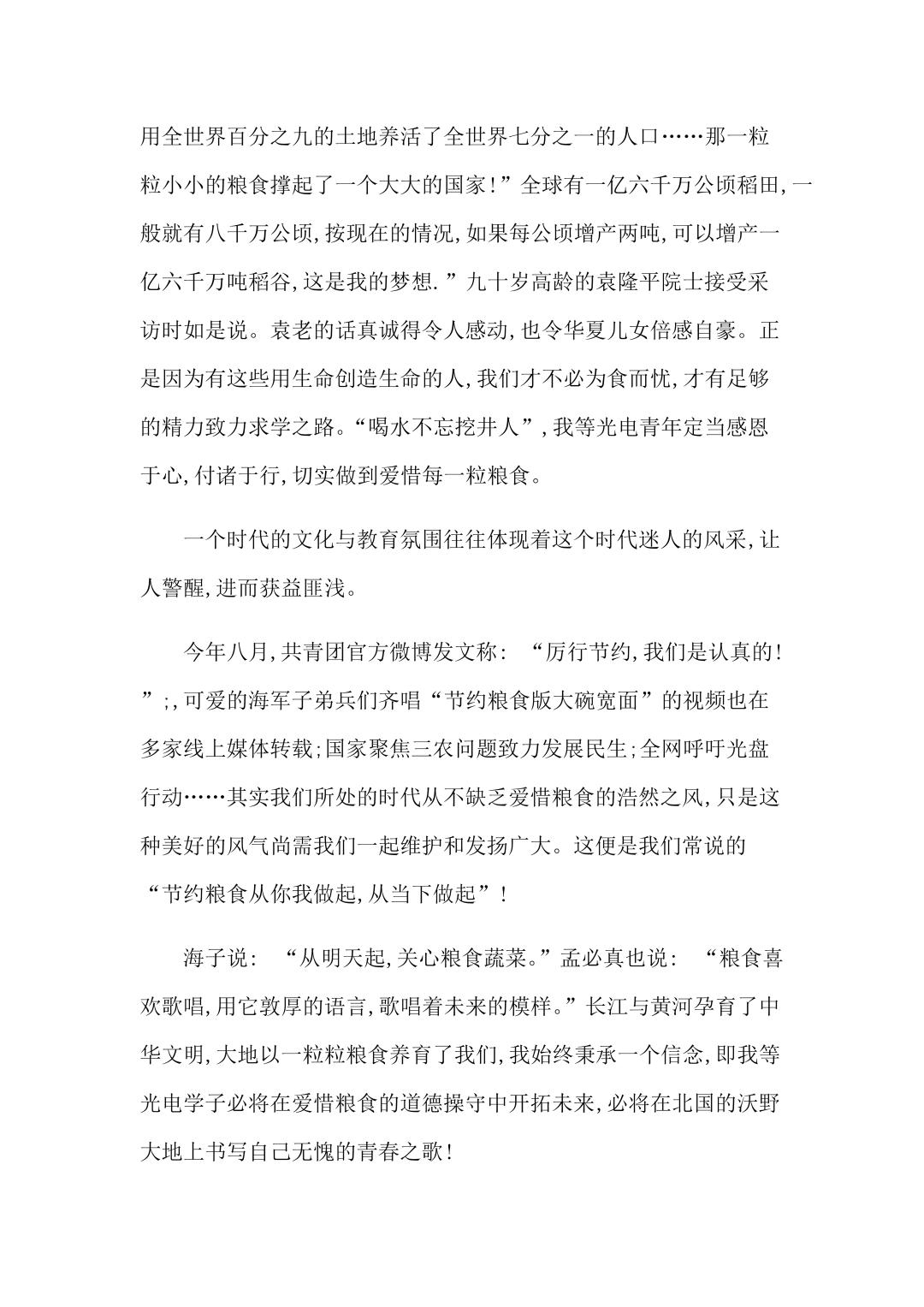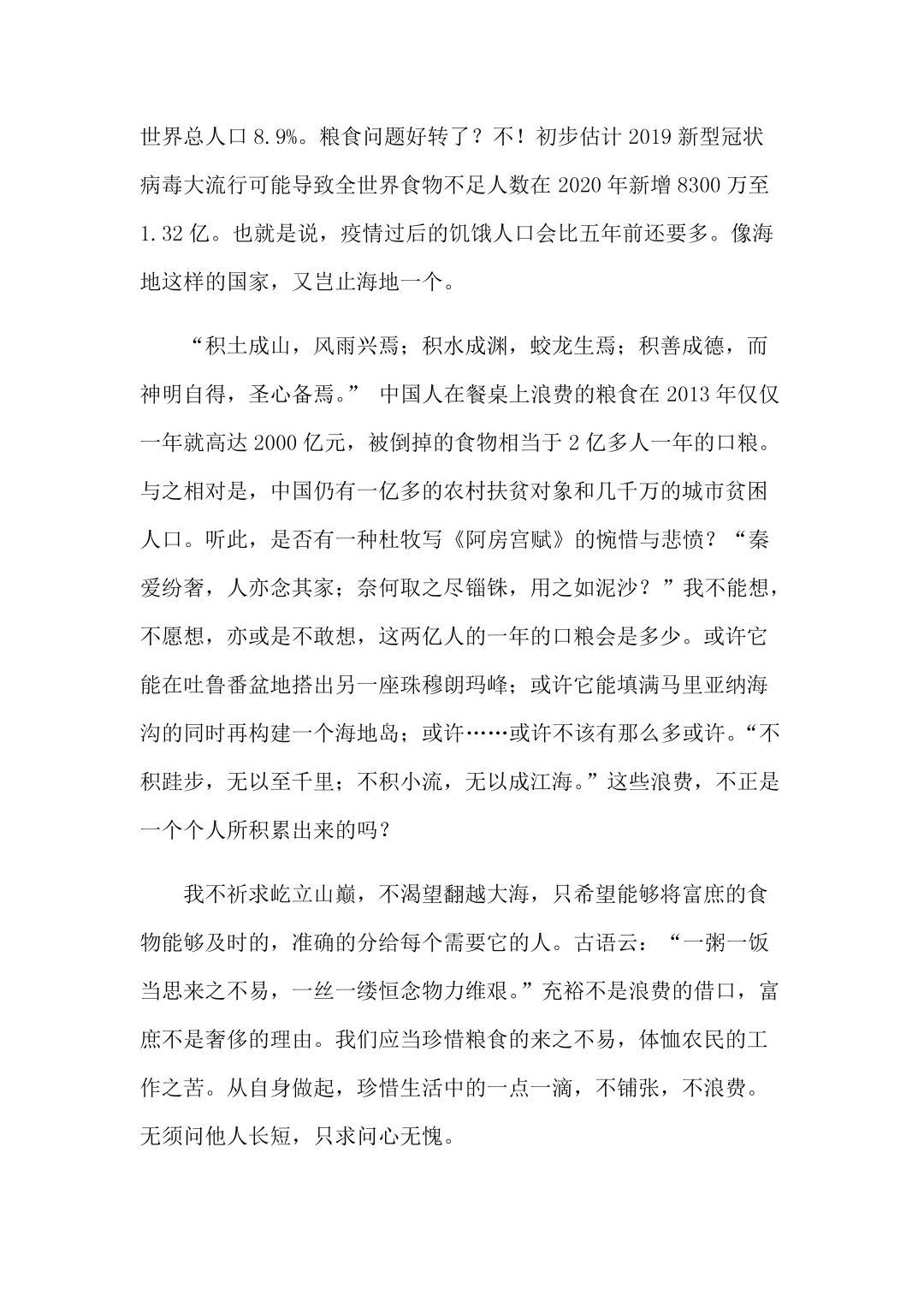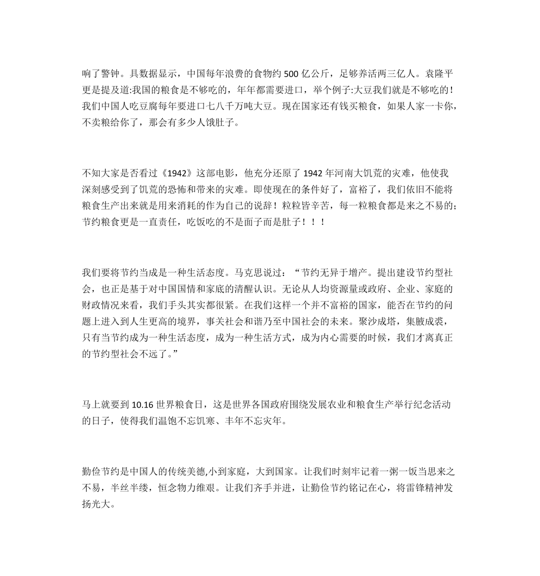 本次征文大賽到這里就結(jié)束了,希望同學們深刻體會節(jié)約糧食的重要性,明白積少成多的道理,感悟日常生活節(jié)約的重要性和重要意義。同時沒有獲獎的同學也不要灰心,再接再厲,加油!
