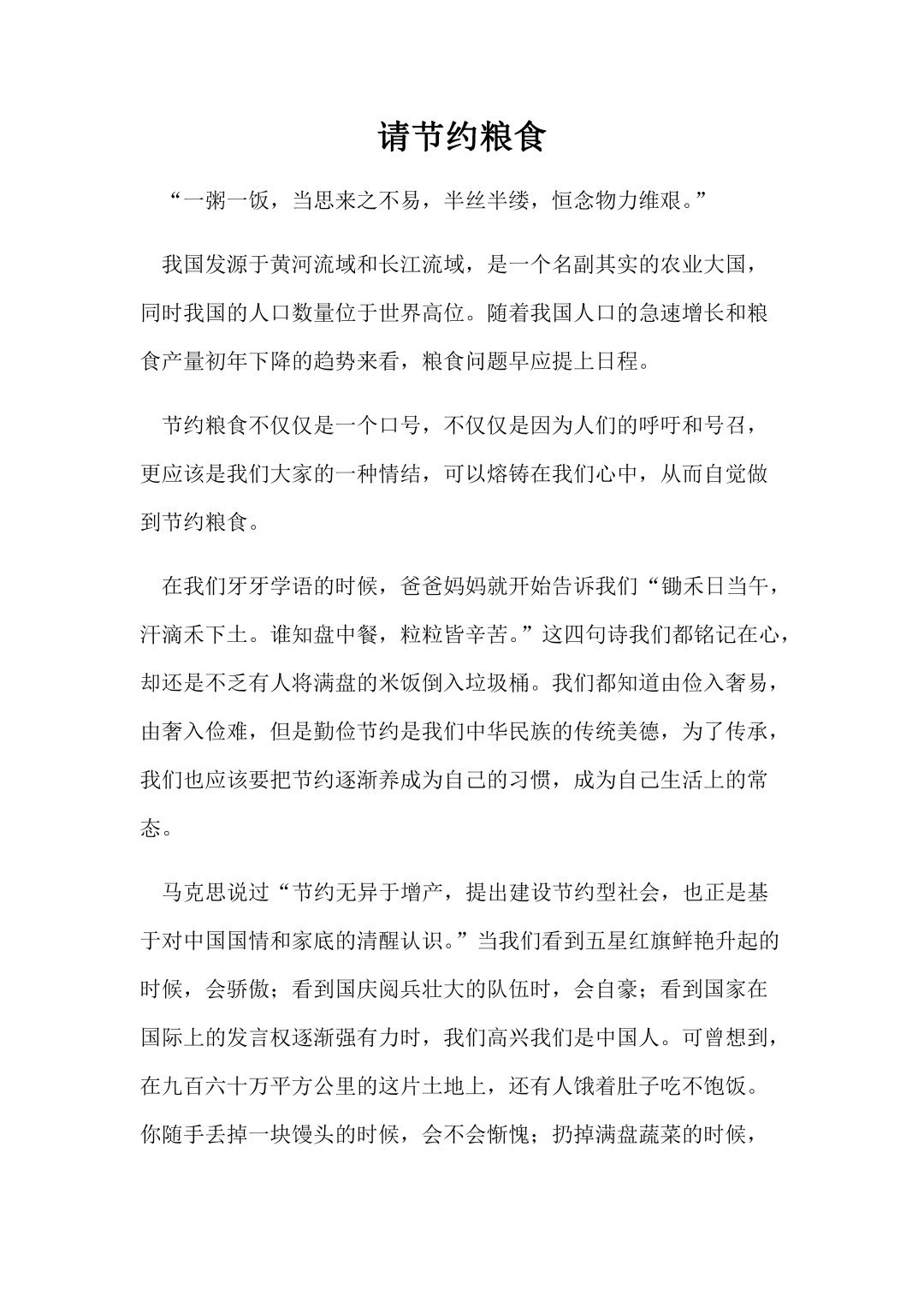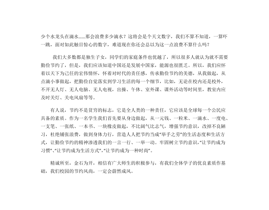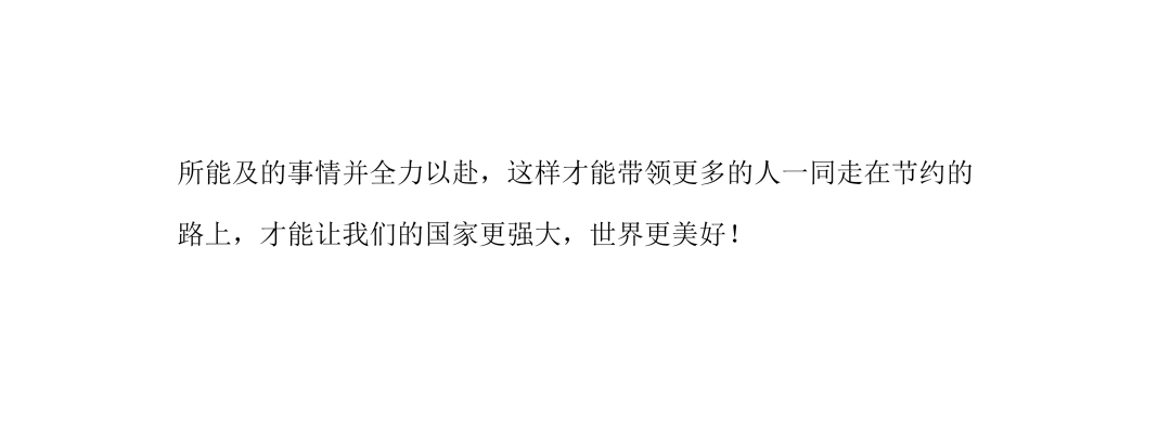 “對我們來說節(jié)約是責任,是使命,讓我們共同攜起手來,節(jié)約每一滴油,珍惜每一粒米,看見每一滴汗水,懂得每一滴眼淚。”