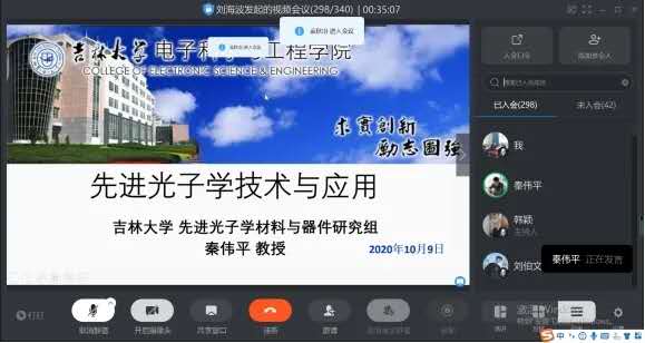 2020 年 10 月 9 日下午 6 點(diǎn),由光電科學(xué)學(xué)院舉辦的“先進(jìn)光子學(xué)技術(shù)與應(yīng)用”主題學(xué)術(shù)報(bào)告在釘釘平臺“光電科學(xué)學(xué)院云報(bào)告廳”順利舉行。