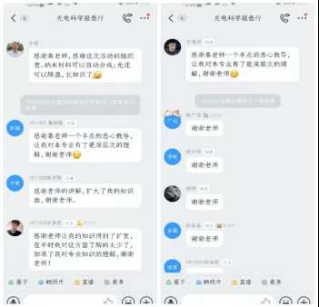 最后,報(bào)告會進(jìn)入到互動提問環(huán)節(jié),秦偉平教授與同學(xué)們以語音問答的方式親切交流。“聽君一席話,勝讀十年書”,講座在同學(xué)們的感謝聲中落下帷幕。通過這次講座,同學(xué)們更加深入的了解到了光學(xué)領(lǐng)域的知識,思維得到了遷移,收獲無疑是無限的。怎樣在有限的時(shí)間里,走更遠(yuǎn)的路;怎樣在紛亂的領(lǐng)域中,挑選到最適合自己的那一列;怎樣利用自己的潛能與優(yōu)勢,去探索專業(yè)知識——這一切的一切,都在這場講座后愈加清晰。