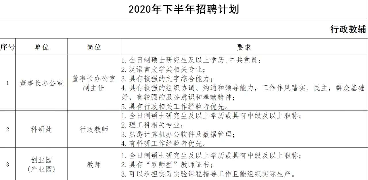 根據(jù)學院發(fā)展需要,現(xiàn)將 2020 年下半年公開招聘教師有關事項公布如下: