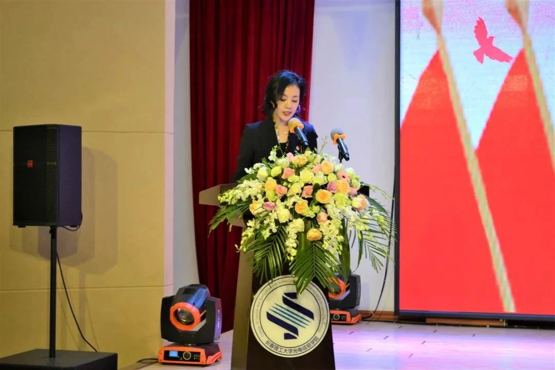 學(xué)生處副處長姜威老師代表學(xué)校群團(tuán)組織宣讀大會(huì)賀詞: