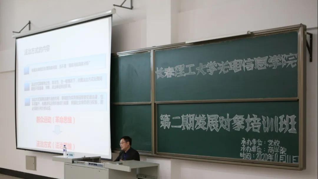 為進(jìn)一步規(guī)范和加強(qiáng)黨員發(fā)展工作,提高發(fā)展黨員質(zhì)量,11 月 11 日下午,由長春理工大學(xué)光電信息學(xué)院黨校主辦、商學(xué)院承辦的第二期黨員發(fā)展對象培訓(xùn)班在東階 402 順利舉行。學(xué)校黨委書記韓秋葉、黨委副書記、副校長蘇佩衡、副校長秦洪君為發(fā)展對象講授專題黨課。全校 300 名黨員發(fā)展對象參加培訓(xùn)。